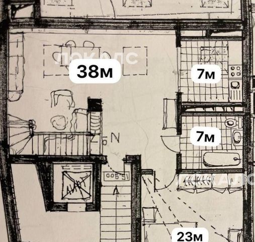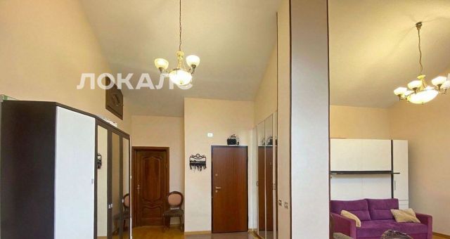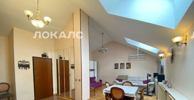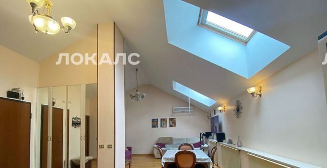 Квартира мансардного типа . Лифт идет до 5 этажа- один пролет пешком ( по факту 6 этаж). Сдается впервые-проживают сами собственники. По планировке: большая гостиная, кухня изолируется выдвижными дверями, совмещенный санузел , изолированная спальня. !Балкона нет!