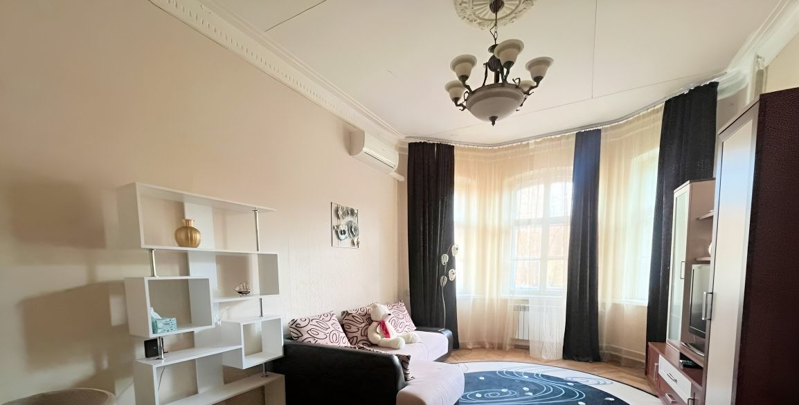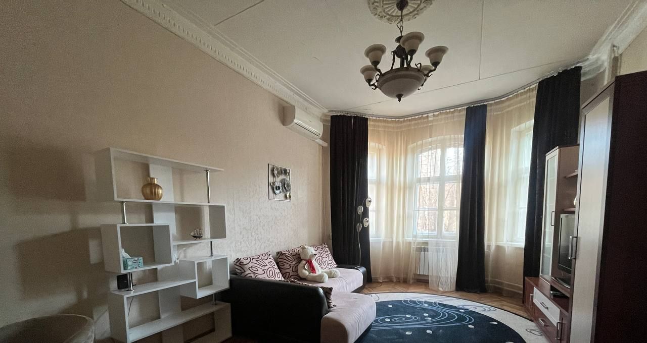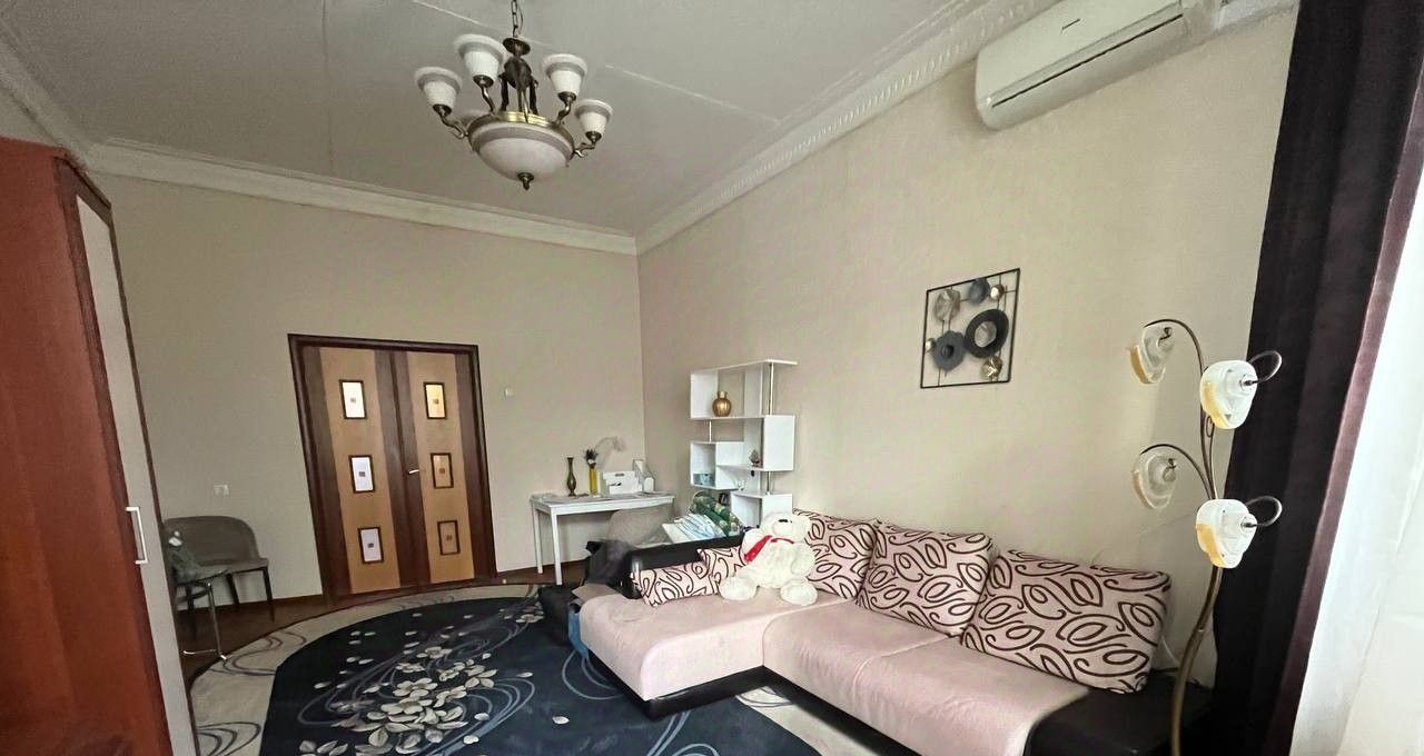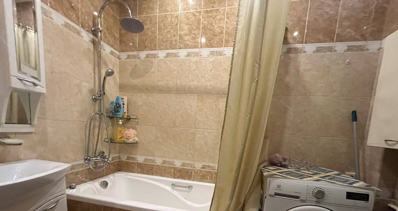 В квартире есть всё необходимое для комфортного проживания: современная мебель и техника, включая кондиционер, холодильник, телевизор и стиральную машину. Окна выходят во двор, поэтому в квартире всегда тихо и уютно. Санузел раздельный, что особенно удобно для семьи.