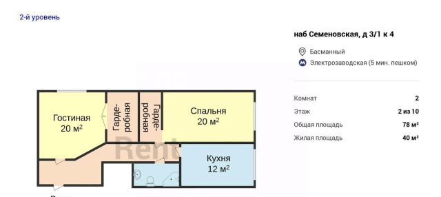 2-к кв. Москва Семеновская наб., 3/1К4 (78.0 м²)