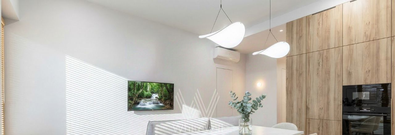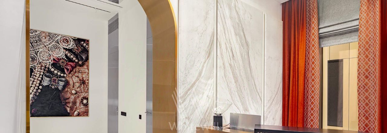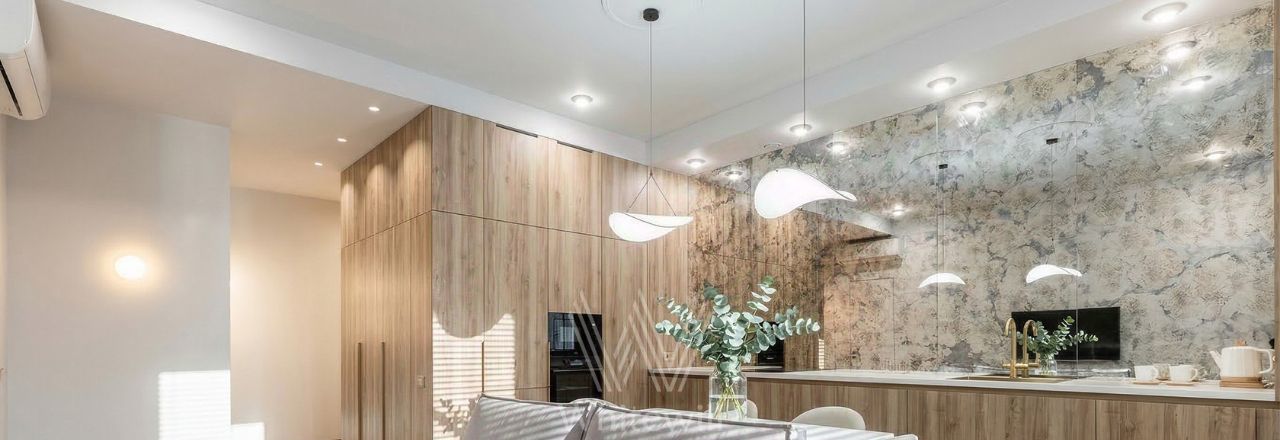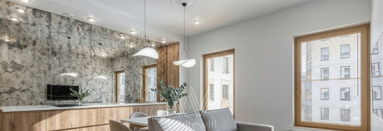 Апартаменты с 1-й спальней в комплексе премиум-класса "Titul на Серебрянической". Апартаменты общей площадью 66 м² расположены на 3-м этаже. Выполнен дизайнерский ремонт в современном стиле. Потолки высотой 3,1 метра украшены подвесными светильниками. Окна выходят в тихий благоустроенный двор.