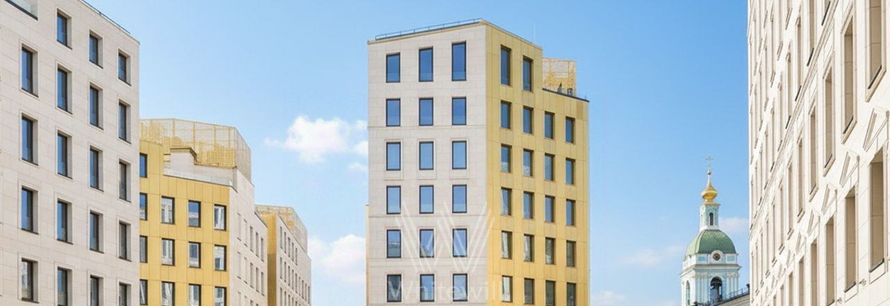 Главное о доме. Коллекция из восьми клубных особняков высотой от семи до девяти этажей. Фасады собраны из юрского камня и латунных панелей, в вечернем свете они мягко светятся золотом. Лобби спроектированы британским бюро Aedas, за архитектуру отвечает Вадим Греков, девелопер — "Центр-Инвест". Внутри — квартиры и апартаменты с панорамными окнами, террасы и двухуровневые пентхаусы с высокими потолками, во дворе — приватный сад без машин, под землёй — паркинг. Из окон открываются виды на Кремль, Зарядье, Яузу и высотку на Котельнической. Готовый клубный формат в двух километрах от сердца города.