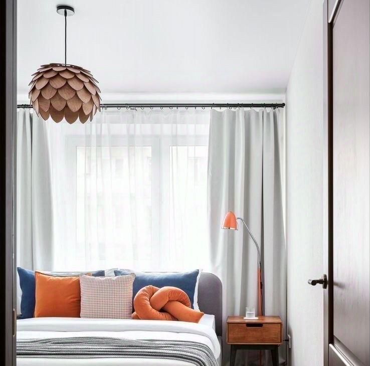 Спальня с окном на тихий двор, кровать, новый шкаф и уютный свет для вашего отдыха.