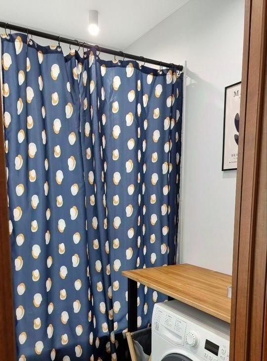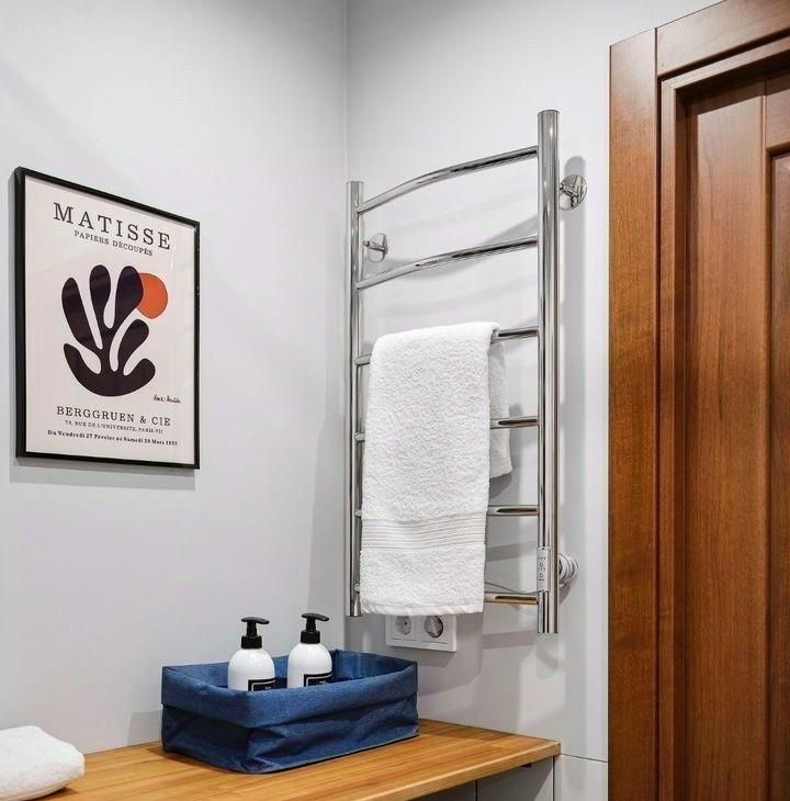Раздельный санузел, стиральная машина и электрический полотенцесушитель.