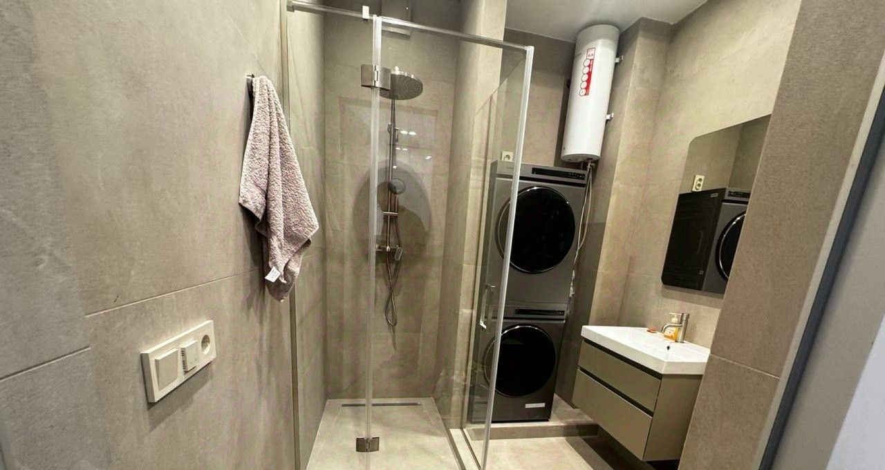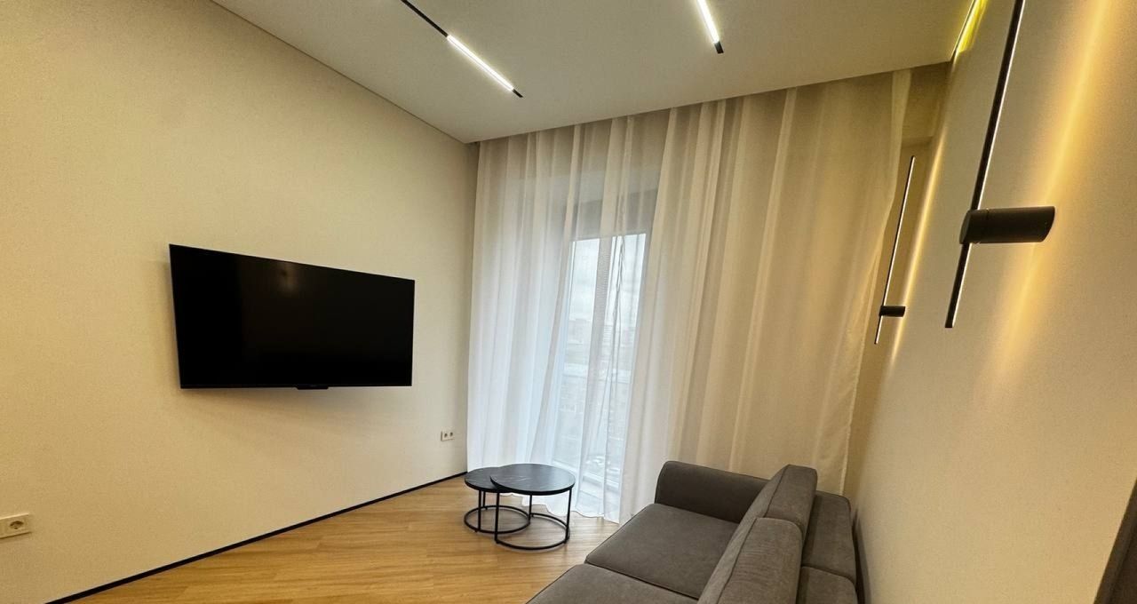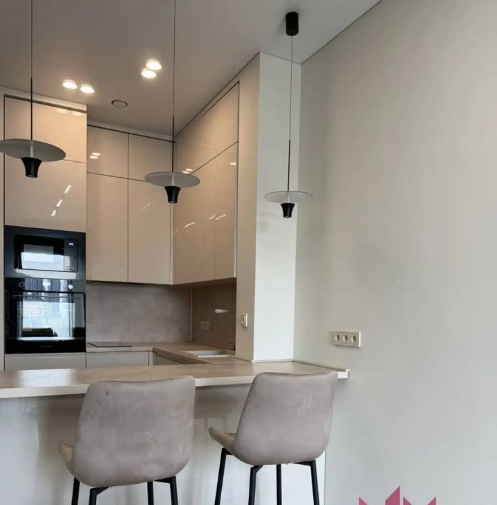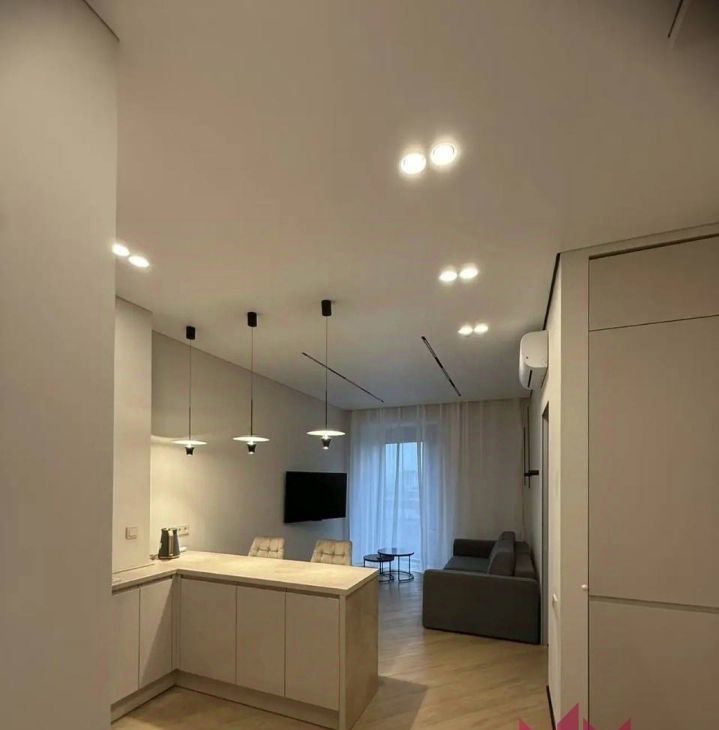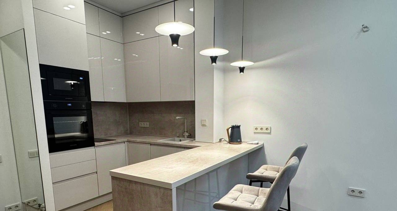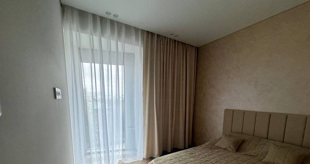 Квартира площадью 42.5 кв. м расположена на 8 этаже 42-этажного монолитного здания, что гарантирует панорамные виды и обилие света. Дизайнерский ремонт, высокие потолки 3.1 метра и продуманная планировка с двумя раздельными комнатами создают ощущение простора и уюта. Вся необходимая для жизни техника уже установлена: кондиционер, стиральная и посудомоечная машины, холодильник, телевизор. В стоимость аренды включены коммунальные услуги, что делает планирование бюджета максимально прозрачным.
