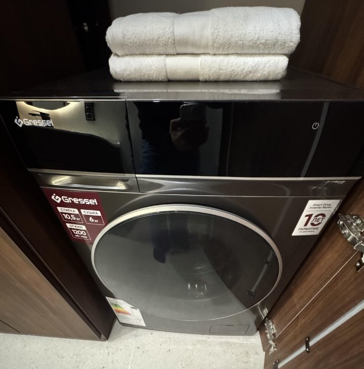 По технике телевизор Samsung с mart tv, стиральная машина с функцией сушки, посудомойка, духовой шкаф, встроенная микроволновка, кондиционер, также ель робот пылесос, кровать с подъемным механизмом.