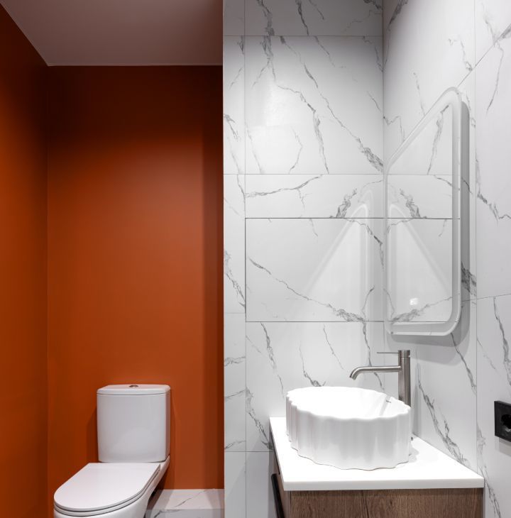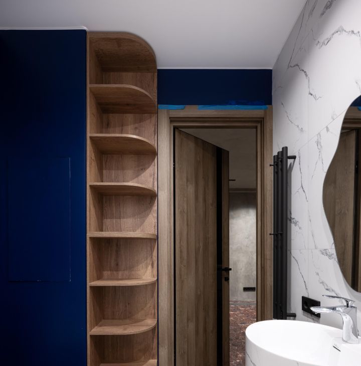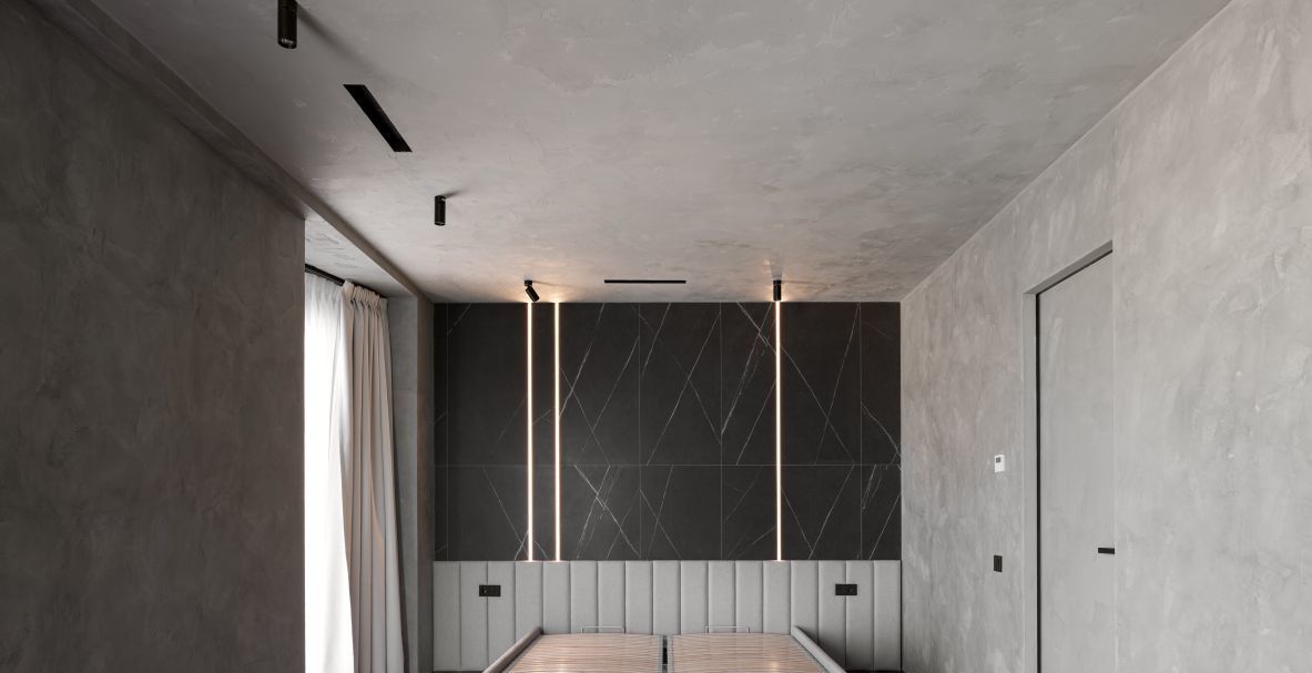 Авторский интерьер в стиле "мягкий лофт". Материалы: венецианская декоративная штукатурка, натуральное дерево, премиальный керамогранит.