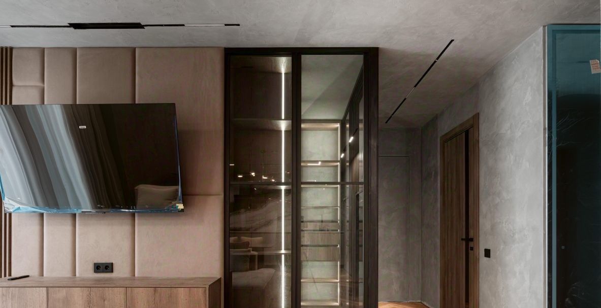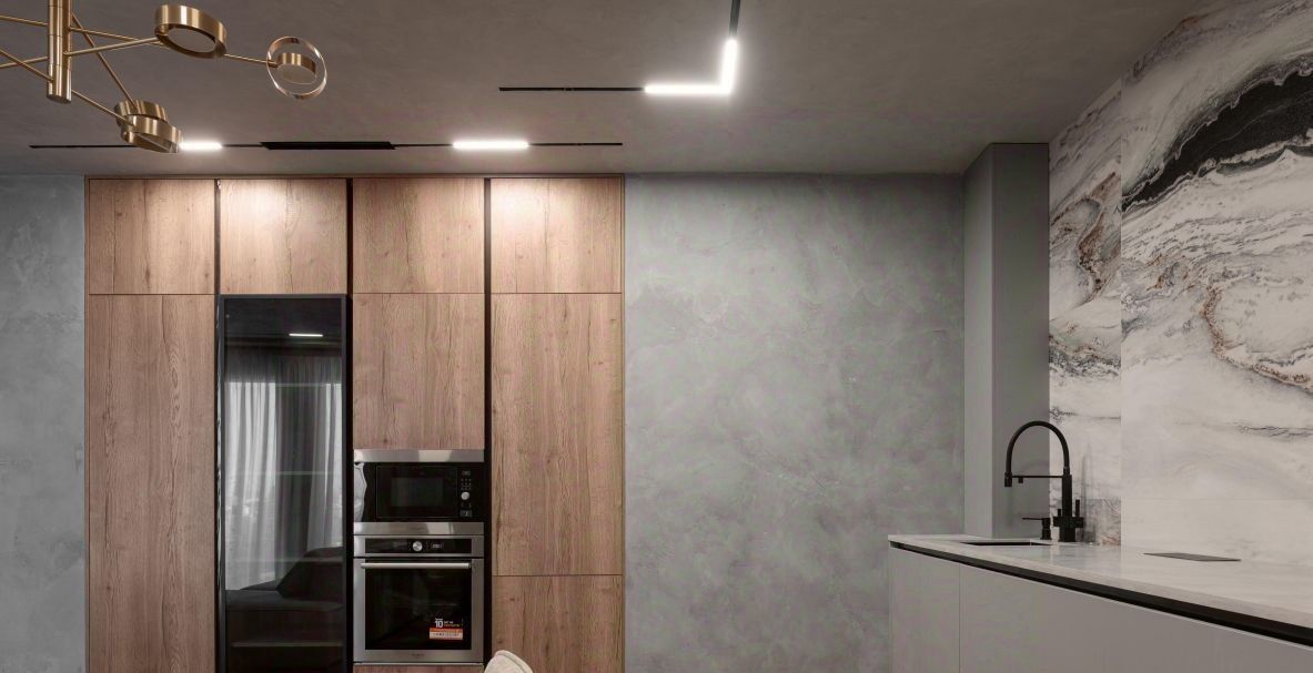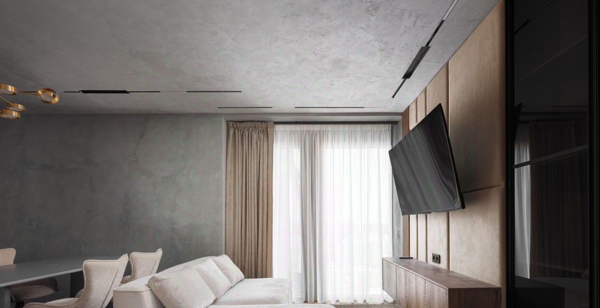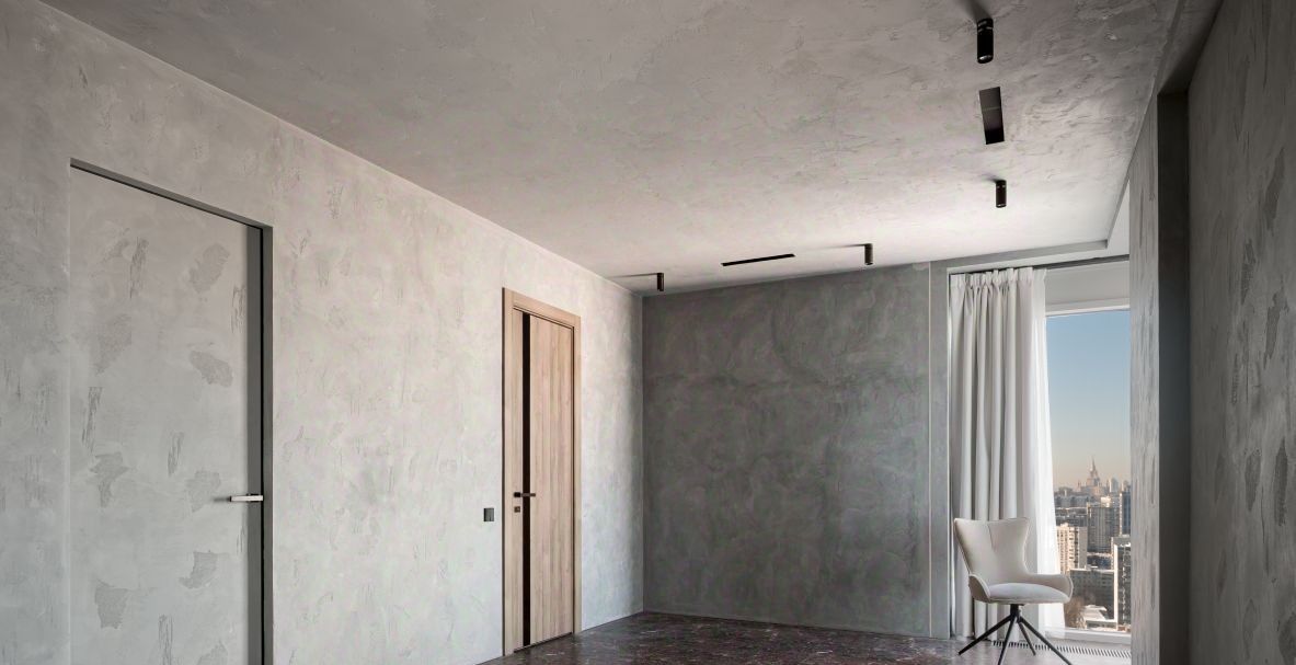 Авторский интерьер в стиле "мягкий лофт". Материалы: венецианская декоративная штукатурка, натуральное дерево, премиальный керамогранит.