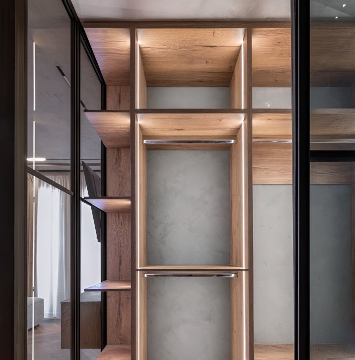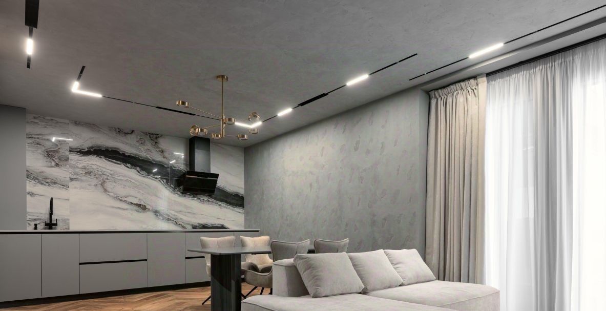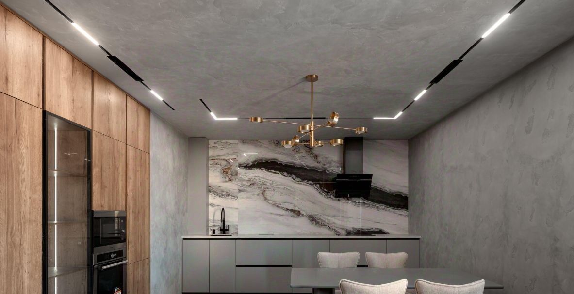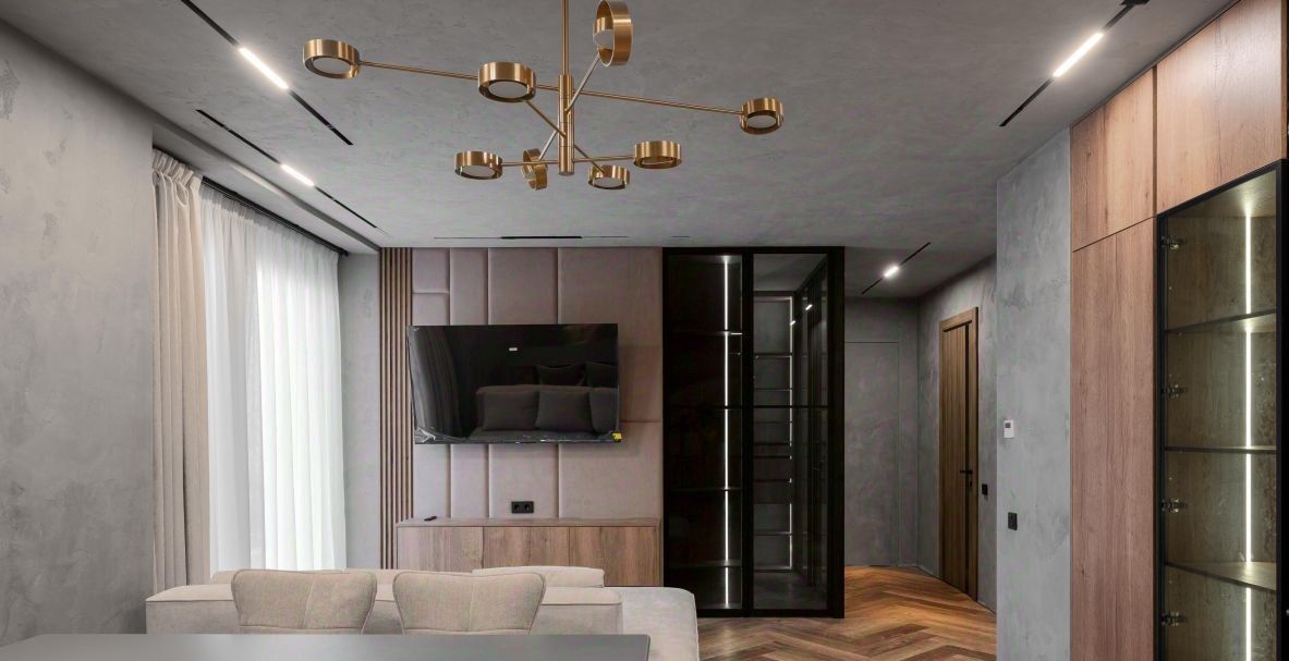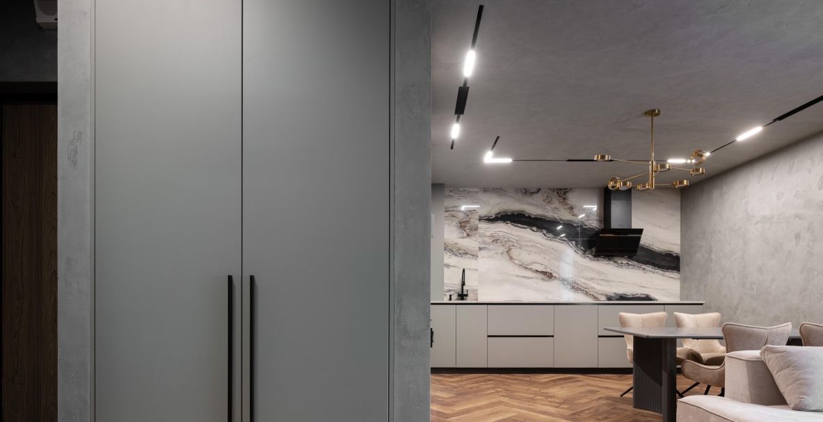 Авторский интерьер в стиле "мягкий лофт". Материалы: венецианская декоративная штукатурка, натуральное дерево, премиальный керамогранит.