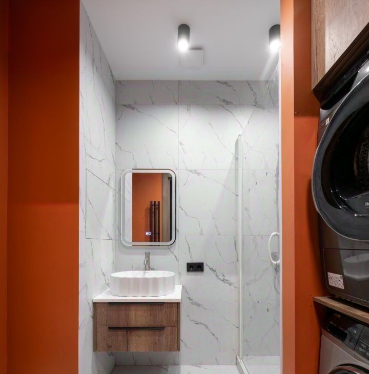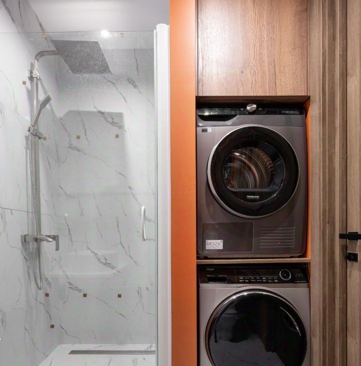Два санузла: 1 оборудован ванной, 2 душевой кабиной и прачечной зоной со стиральной и сушильной машинами.