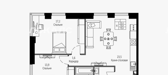 2-к кв. Москва Севастопольский просп., 22А (72.0 м²)