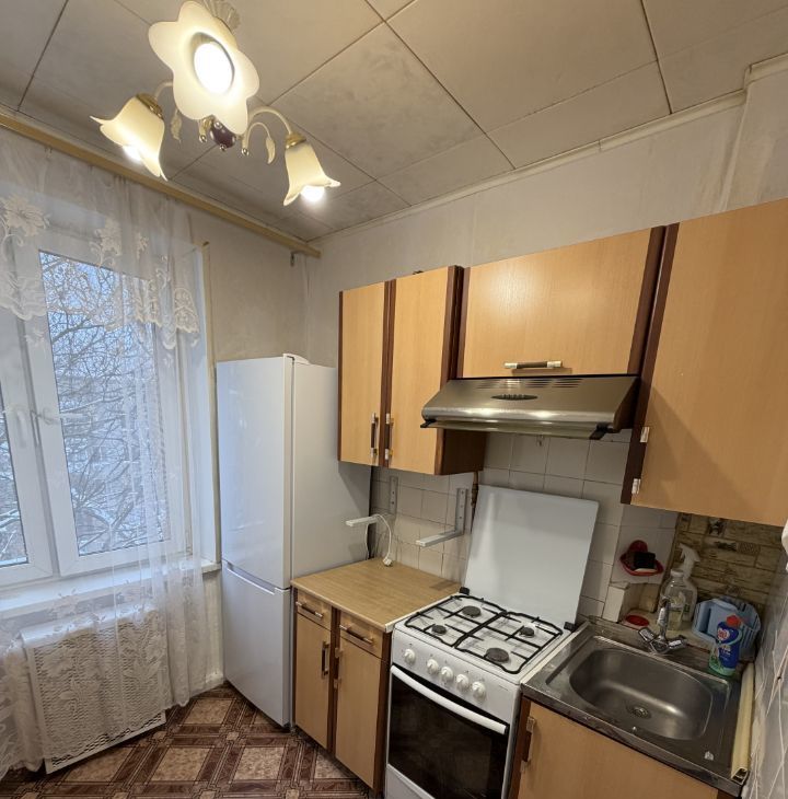 Предлагаем в аренду уютную и тёплую двухкомнатную квартиру с проходными комнатами,площадью 44 кв. м, расположенную на пятом этаже пятиэтажного блочного дома, построенного в 1961 году. Жилая площадь составляет 30 кв. м, а кухня — 6 кв. м. Высота потолков — 2.48 метра.