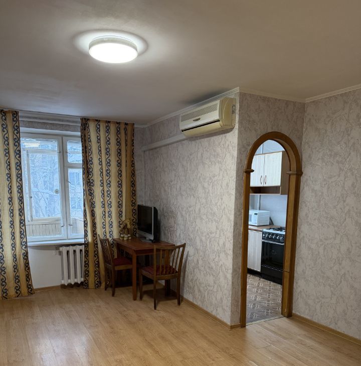 Сдается двухкомнатная квартира с проходной комнатой и большой гардеробной. сделан косметический ремонт. Чистая квартира. Есть диван и можно по запросу еще купить на усмотрение арендатора. Дополнительно счетчики вода и электричество.