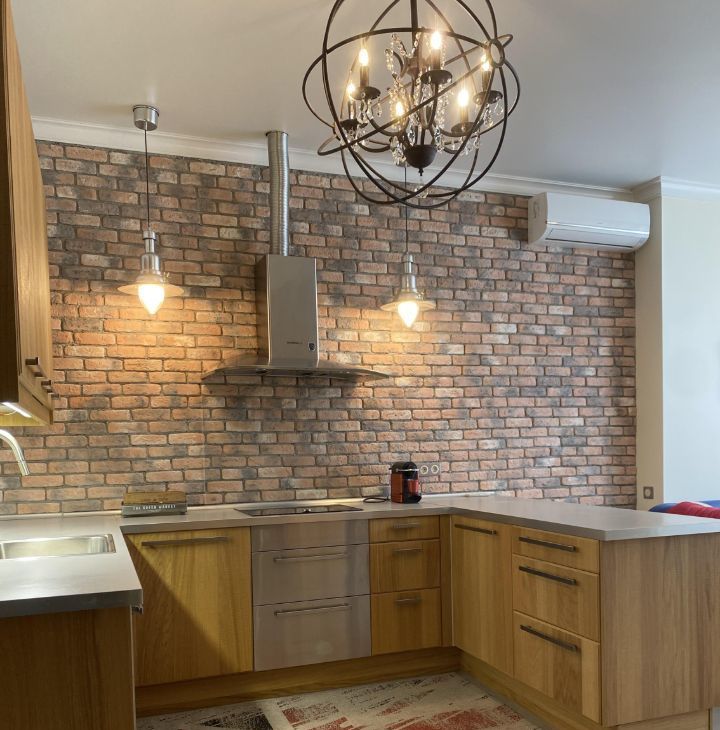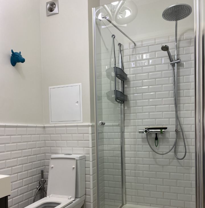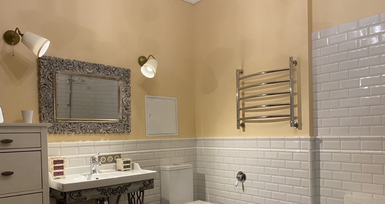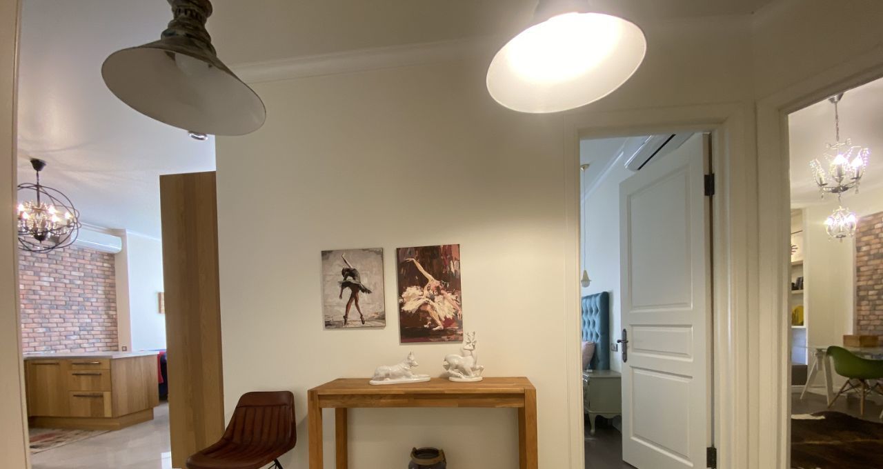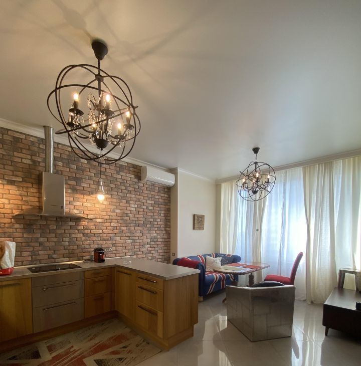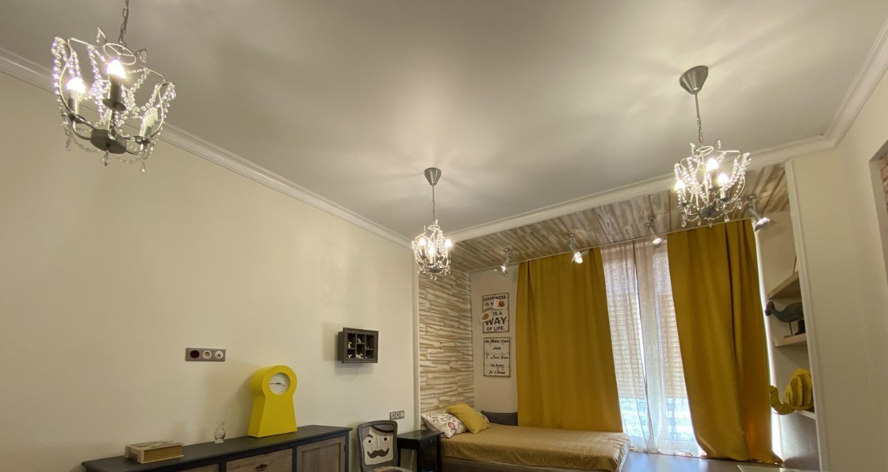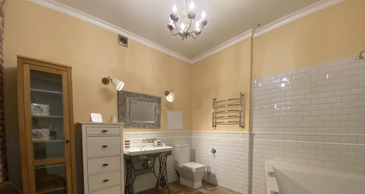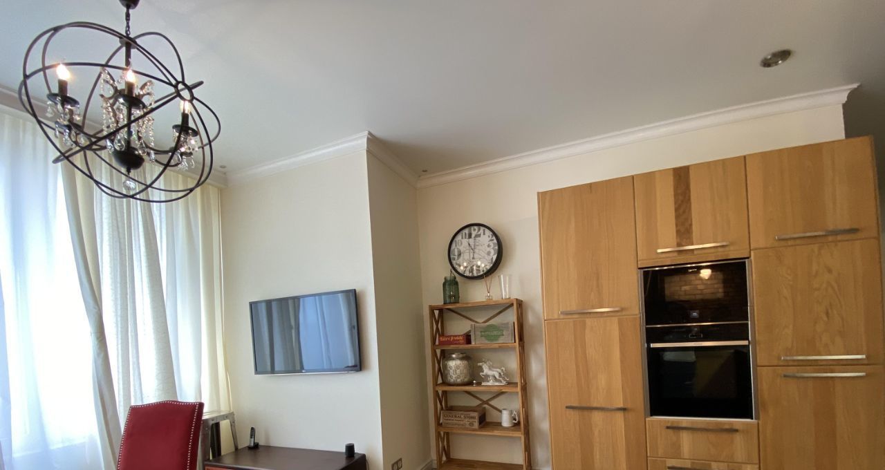 В квартире выполнен дизайнерский ремонт с использованием качественных материалов. В каждой комнате есть мебель, а на кухне установлен полный комплект техники: кондиционер, холодильник, посудомоечная и стиральная машины, телевизор. Два совмещенных санузла оборудованы ванной и душевой кабиной, что позволит с комфортом разместиться даже большой семье. Окна выходят во двор, поэтому в квартире тихо и спокойно.