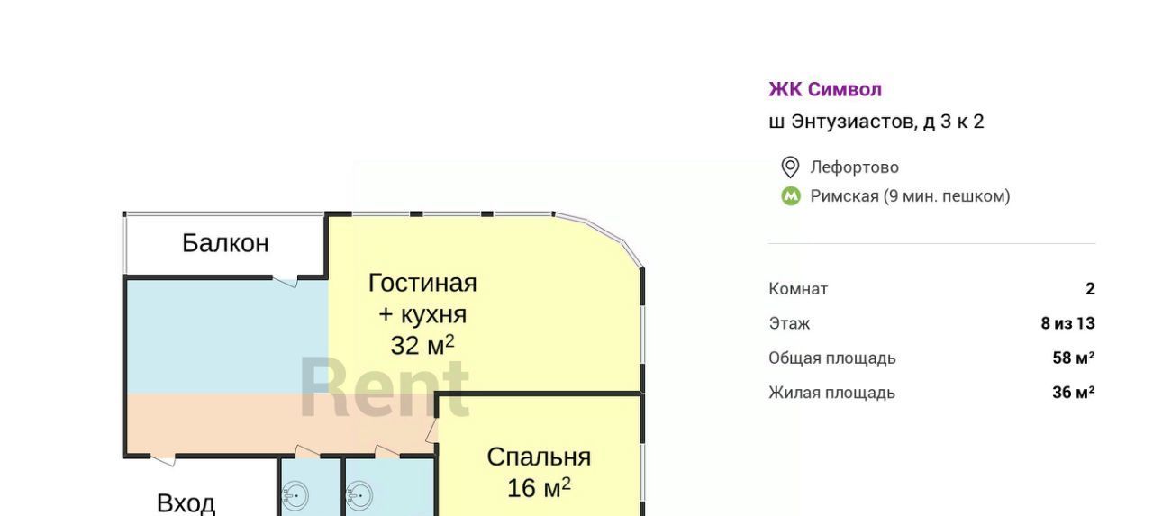 2-к кв. Москва ш. Энтузиастов, 3к2 (58.0 м²)