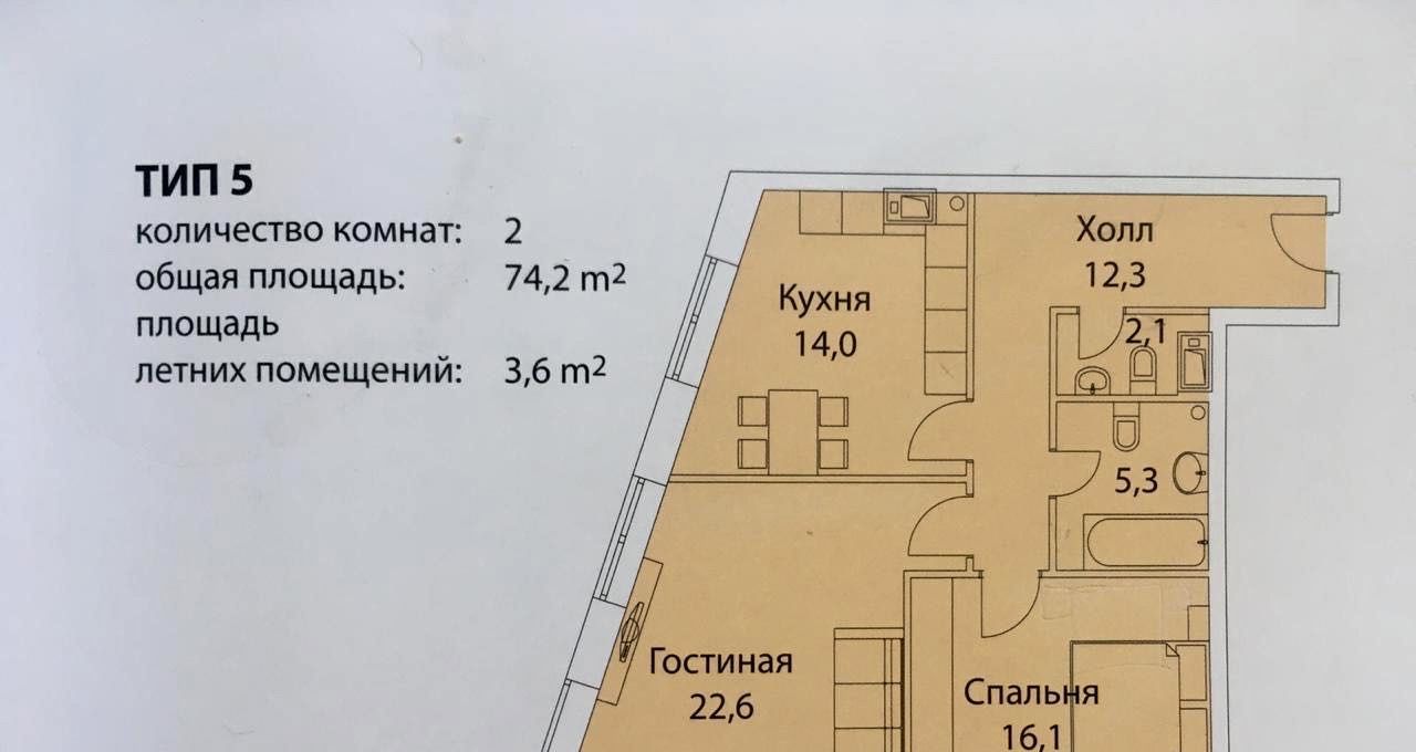 2-к кв. Москва Шелепихинская наб., 34к2 (74.0 м²)