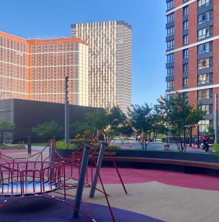 Территория с ландшафтным дизайном, спортивные и детские площадки, беговые и велодорожки.