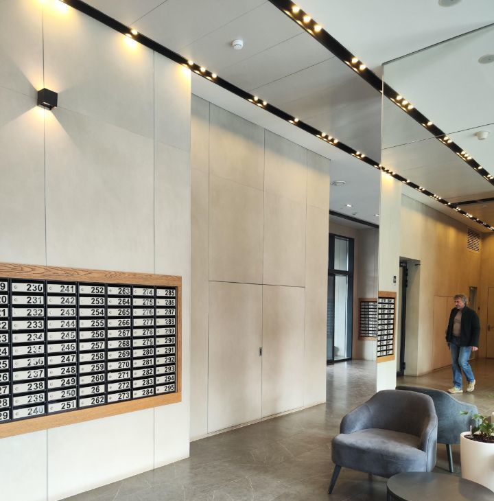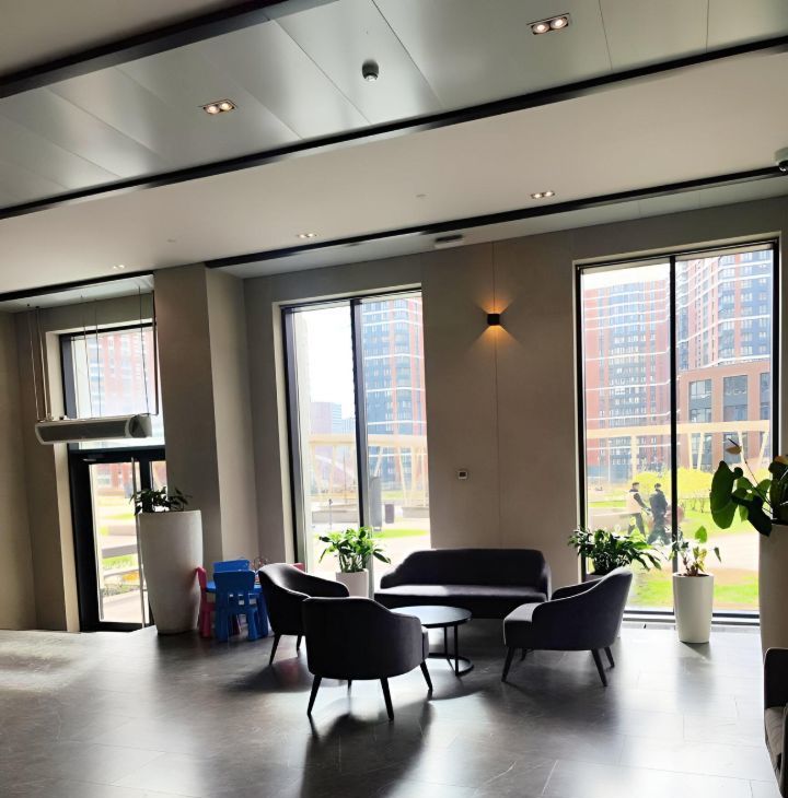 Интересная придомовая территория. ЖК с атмосферой города внутри: можно выйти за кофе, на тренировку или просто пройтись по набережной — и всё рядом.