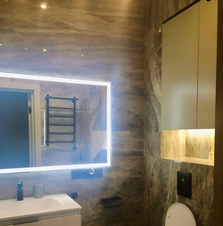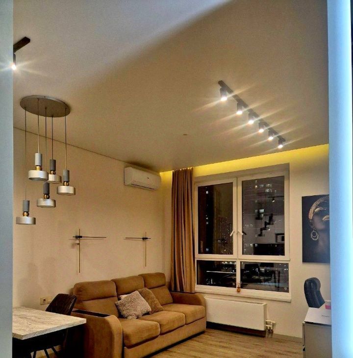 Выполнен качественный дизайнерский ремонт в спокойных нейтральных тонах. Квартира полностью укомплектована мебелью и техникой, готова к комфортному проживанию.