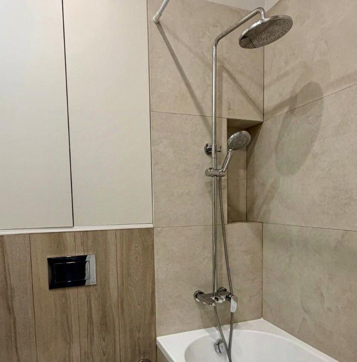 Из техники в наличии: кондиционер, холодильник, посудомоечная машина, СВЧ, 2 телевизора и стиральная машина. Совмещённый санузел оборудован ванной, что особенно приятно после трудового дня.