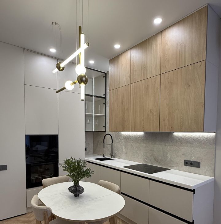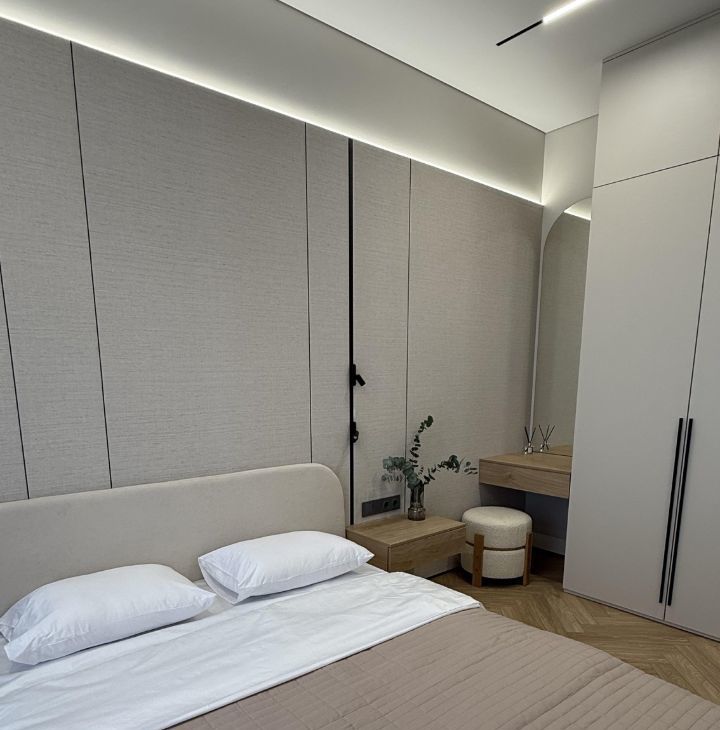 Квартира полностью меблирована и укомплектована под ключ. Дизайн квартиры выполнен в современном стиле и с использованием высококачественных материалов. Встроенная мебель по индивидуальному заказу, техника (стиральная и сушильная машины, телевизор,посудомоечная машина, духовой шкаф и свч, водонагреватель,фильтр для воды, система защиты от протечки воды).