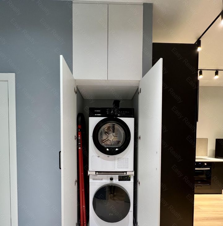 Квартира полностью меблирована и оснащена всей необходимой техникой от ведущих производителей, гардеробной комнатой и несколькими шкафами.