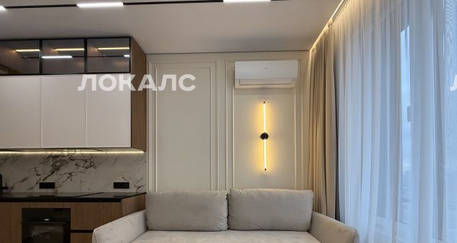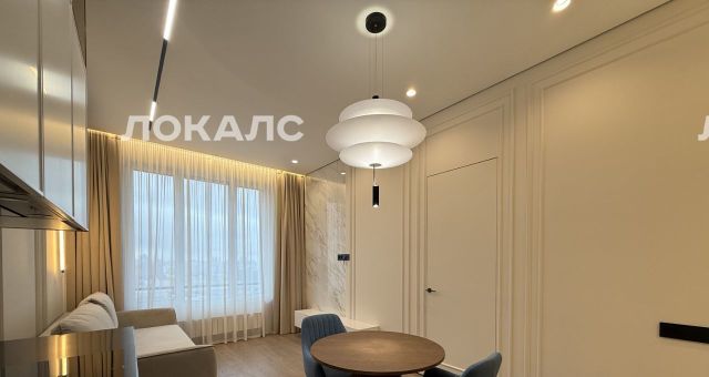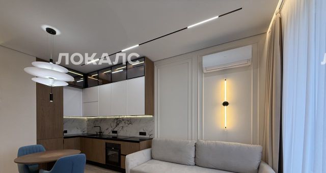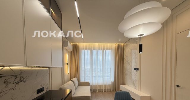 Сдаётся в аренду современная квартира с дизайнерским ремонтом в новом доме 2023 года постройки. Общая площадь — 45 кв. м, жилая — 15 кв. м, кухня — 20 кв. м. Квартира находится на 26-м этаже 41-этажного здания, а из окон открывается вид на улицу. Высокие потолки — 3.2 метра — добавляют пространства и света. До метро Шелепиха всего 14 минут пешком.