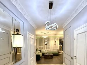 Апартамент оснащён всем необходимым для жизни: кондиционер, холодильник, посудомоечная машина, телевизор и стиральная машина. В кухне и комнате установлена удобная мебель. Планировка включает в себя два санузла: с ванной и душевой кабиной. Окна выходят на улицу, что обеспечивает много естественного света и панорамные виды.