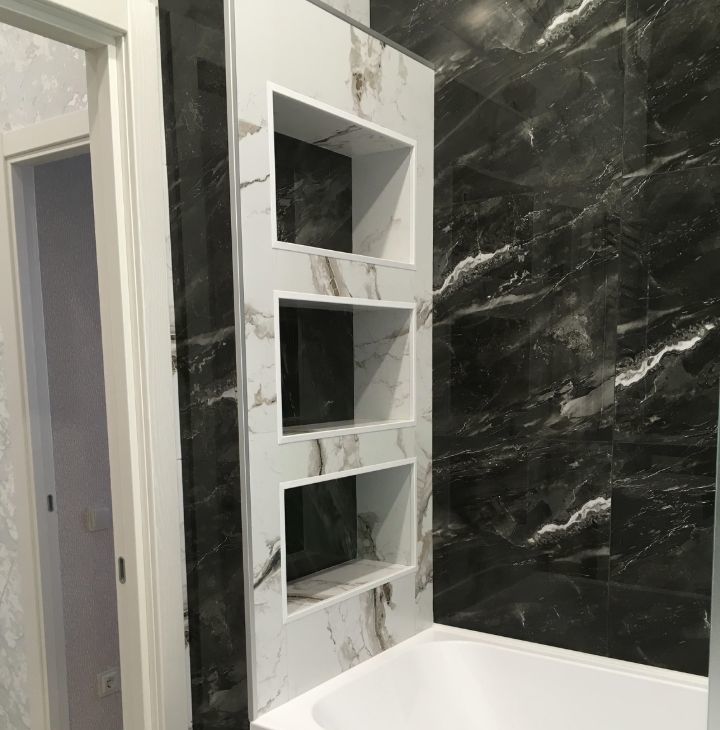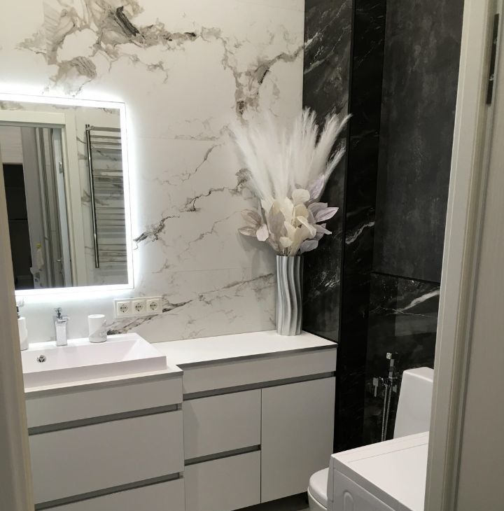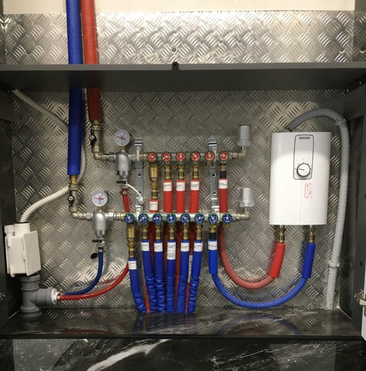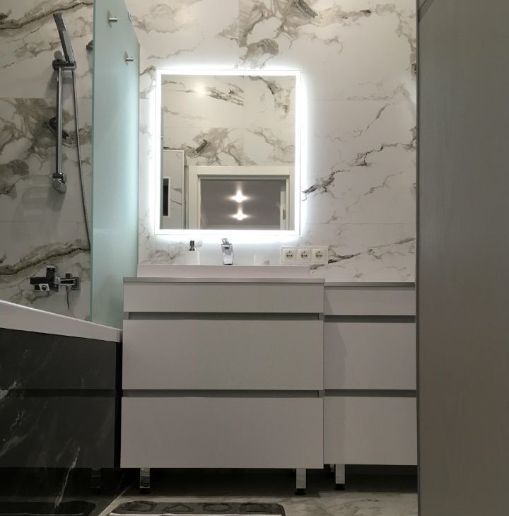В ванной комнате установлен теплый пол и трехфазный водонагреватель STIEBEL.