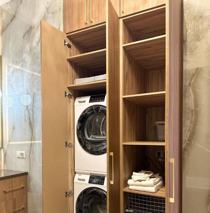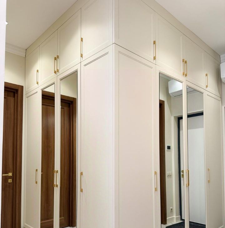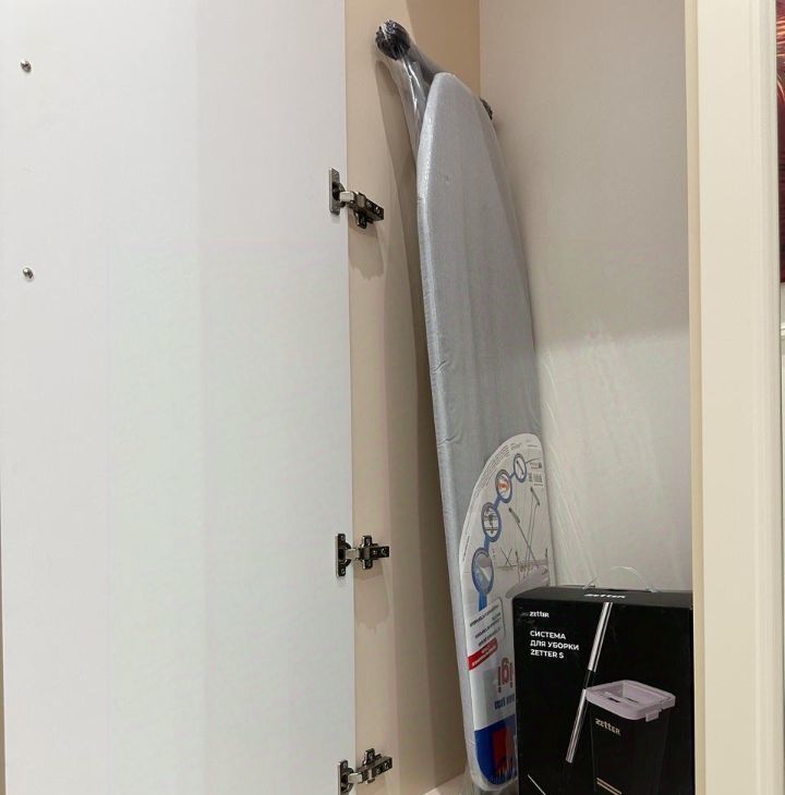 Прихожая: большой шкаф для вещей и обуви, хоз.блок,робот пылесос, гладильная доска и утюг, швабра, стремянка, сушилка.