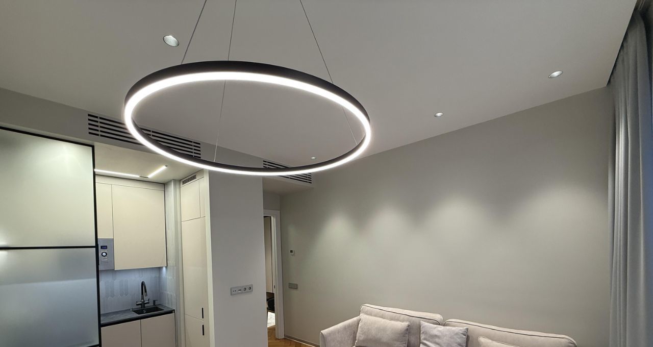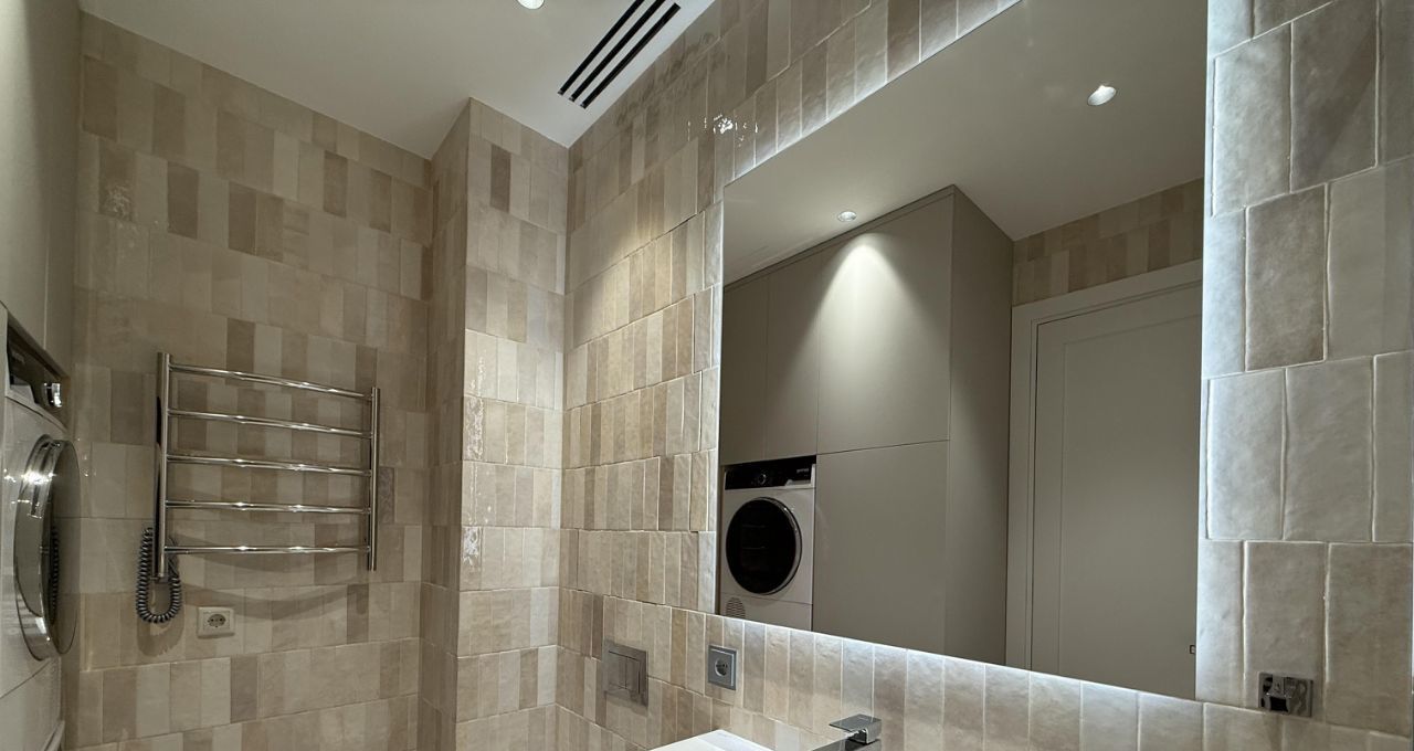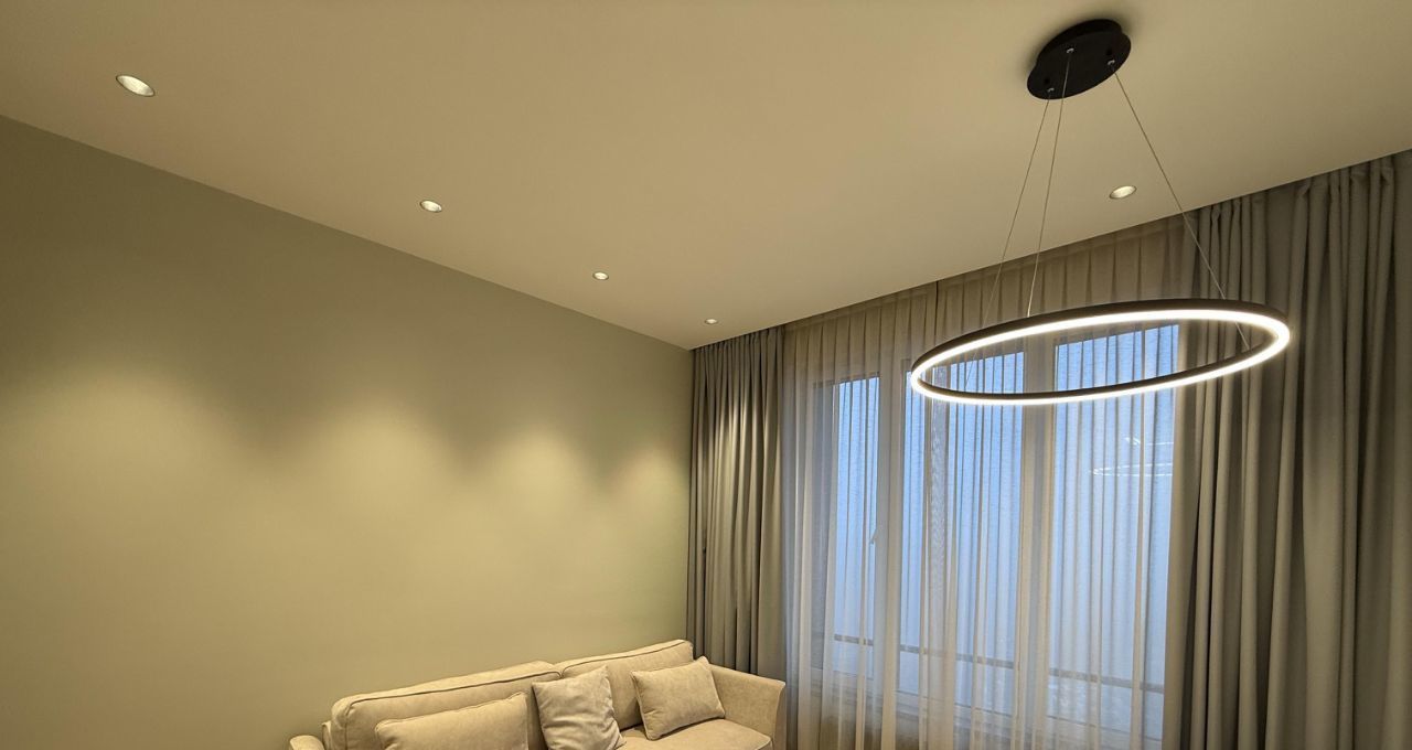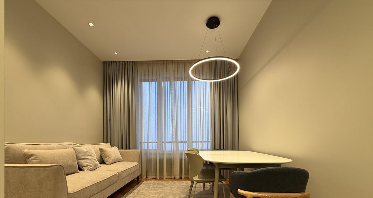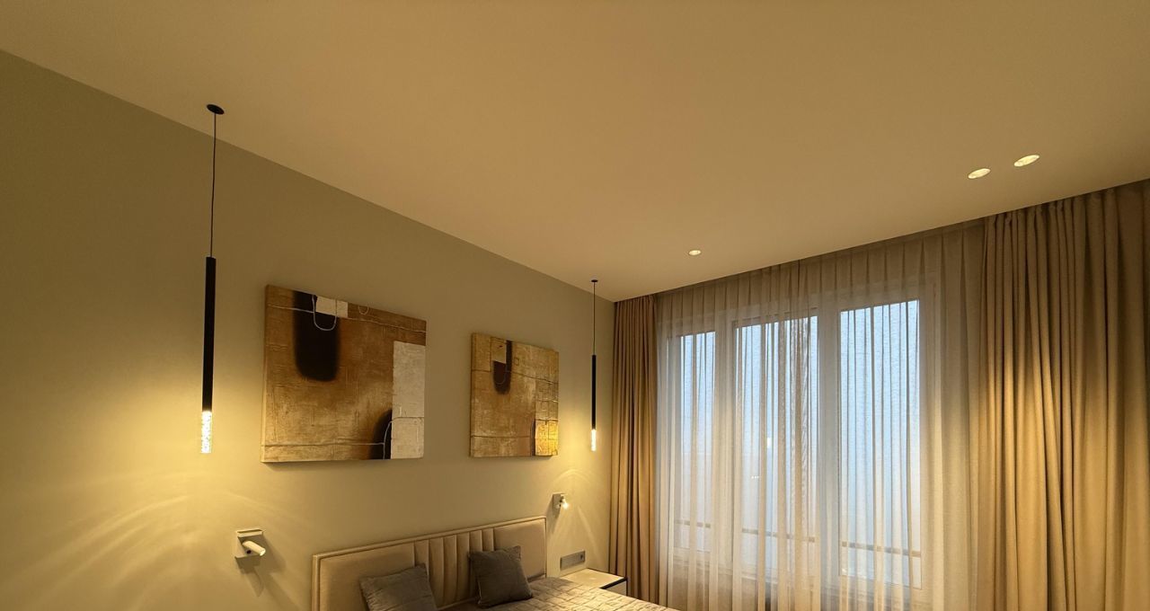 Сдается стильная двухкомнатная квартира с дизайнерским ремонтом в современном доме 2023 года постройки. Квартира находится на 30-м этаже 41-этажного здания, что открывает великолепные виды из окон как на улицу, так и во двор. Общая площадь квартиры составляет 70 кв. м, жилая — 38,5 кв. м, а просторная кухня — 12 кв. м. Высокие потолки в 3,2 метра добавляют ощущение простора и света.