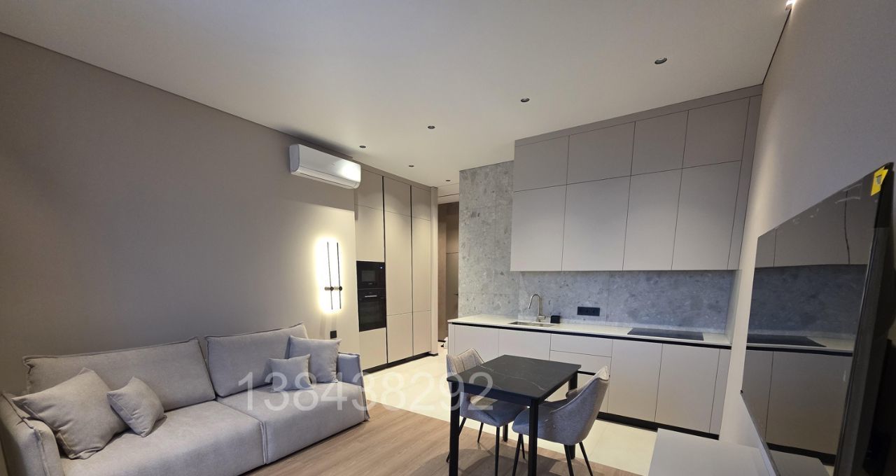 Квартира полностью укомплектована мебелью и всей необходимой бытовой техникой для комфортного проживания: стиральная машина, посудомоечная машина, холодильник, духовой шкаф, микроволновая печь, телевизор 55".