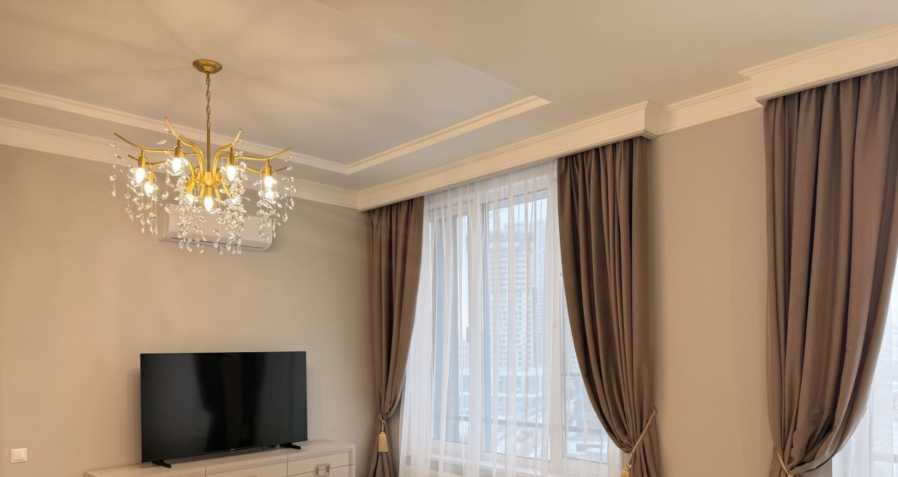 Сдаётся в аренду стильная квартира в современном жилом комплексе, расположенная на 7 этаже 41-этажного дома, построенного в 2023 году. Общая площадь квартиры составляет 70 кв. м, жилая площадь — 38 кв. м, а просторная кухня занимает 25 кв. м. Высокие потолки в 3.2 метра добавляют ощущение простора. Окна выходят на улицу, что обеспечивает хорошее естественное освещение.