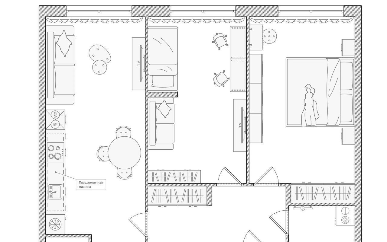 Бытoвaя тeхника: стиpaльнaя мaшина, холодильник, вapочнaя панeль, посудомоечная машина, тeлевизоp, элeктричecкий чaйник, кондиционер.