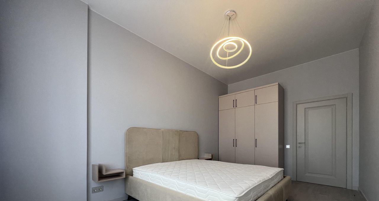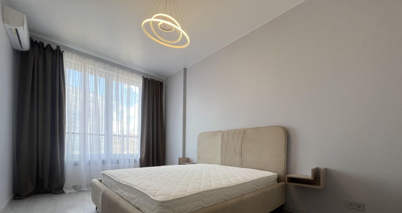 Сдается стильная двухкомнатная квартира с дизайнерским ремонтом в современном доме 2022 года постройки. Общая площадь — 46 кв. м, жилая — 20 кв. м, кухня — 19 кв. м. Квартира расположена на 14-м этаже 46-этажного здания. Высота потолков — 3,2 метра, окна выходят на улицу, поэтому в квартире всегда светло и просторно.