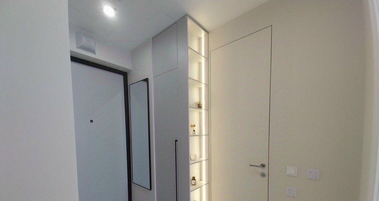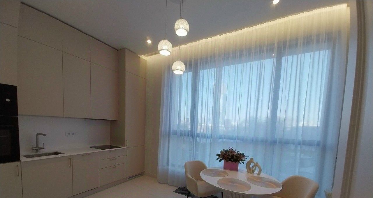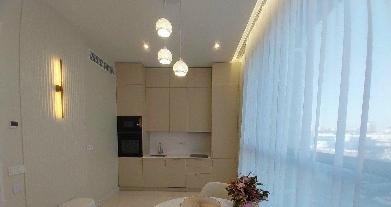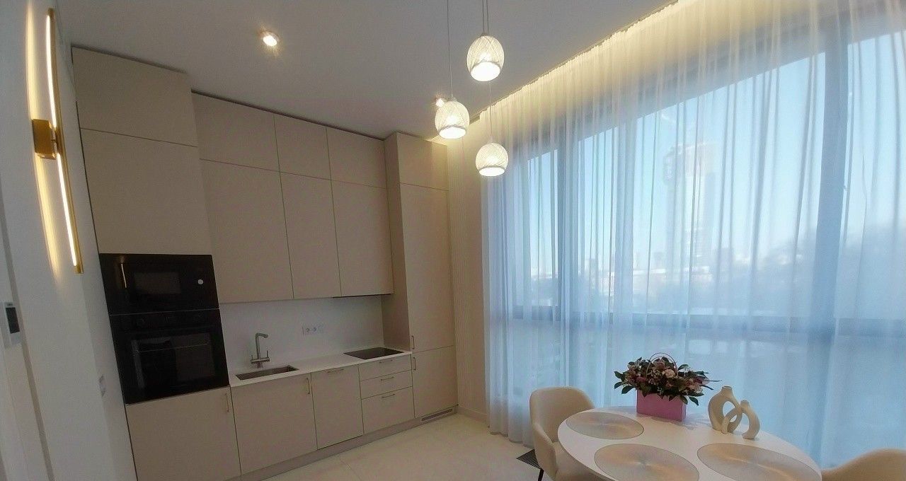 Новейший дорогостоящий дизайнерский ремонт, новая качественная мебель и техника (встроенный холодильник, плита и вытяжной шкаф, встроенная микроволновая печь с духовым шкафом, посудомоечная машина, стиральная машина, робот-пылесос). Есть много мест для закрытого хранения вещей.