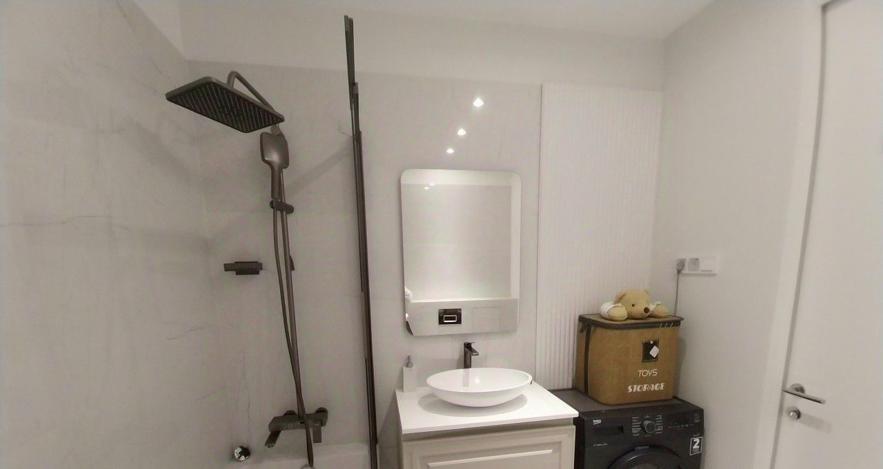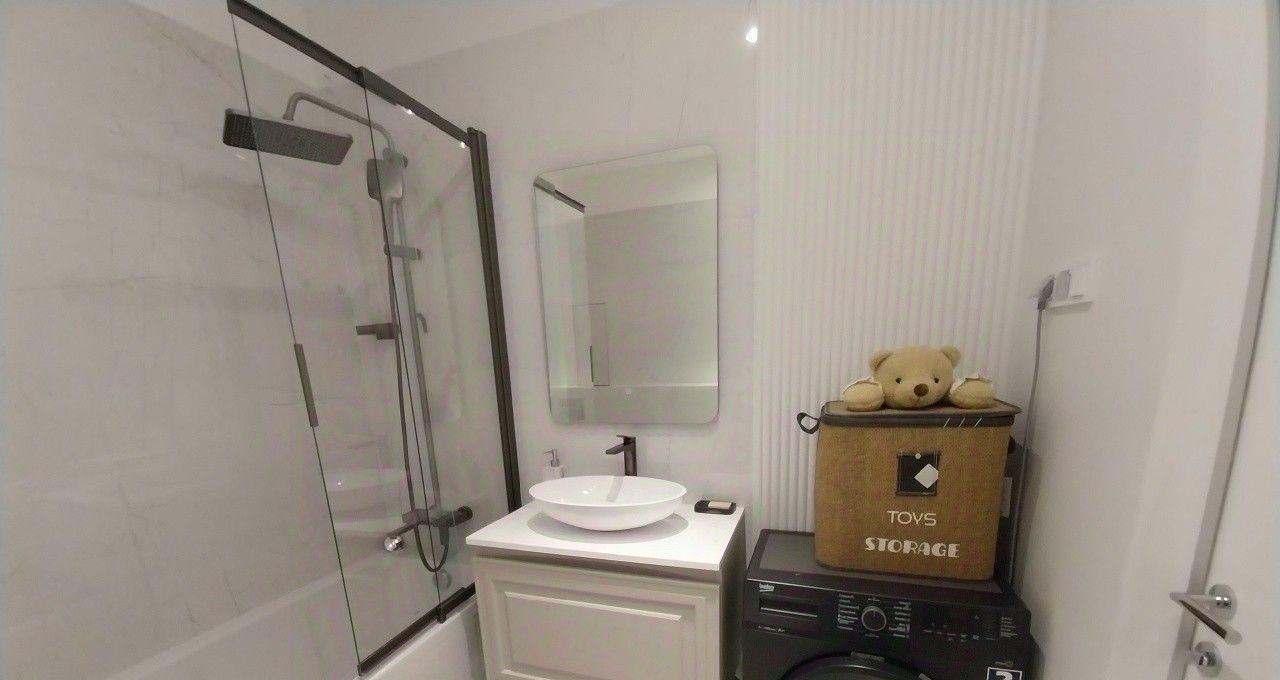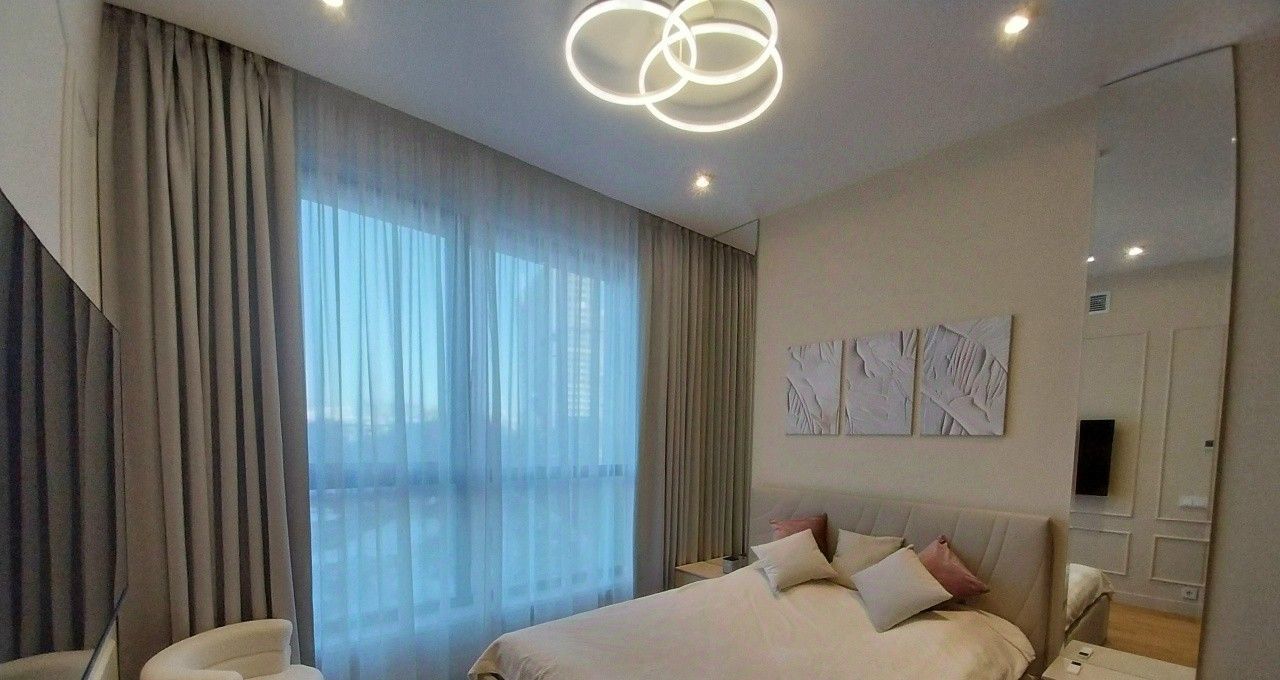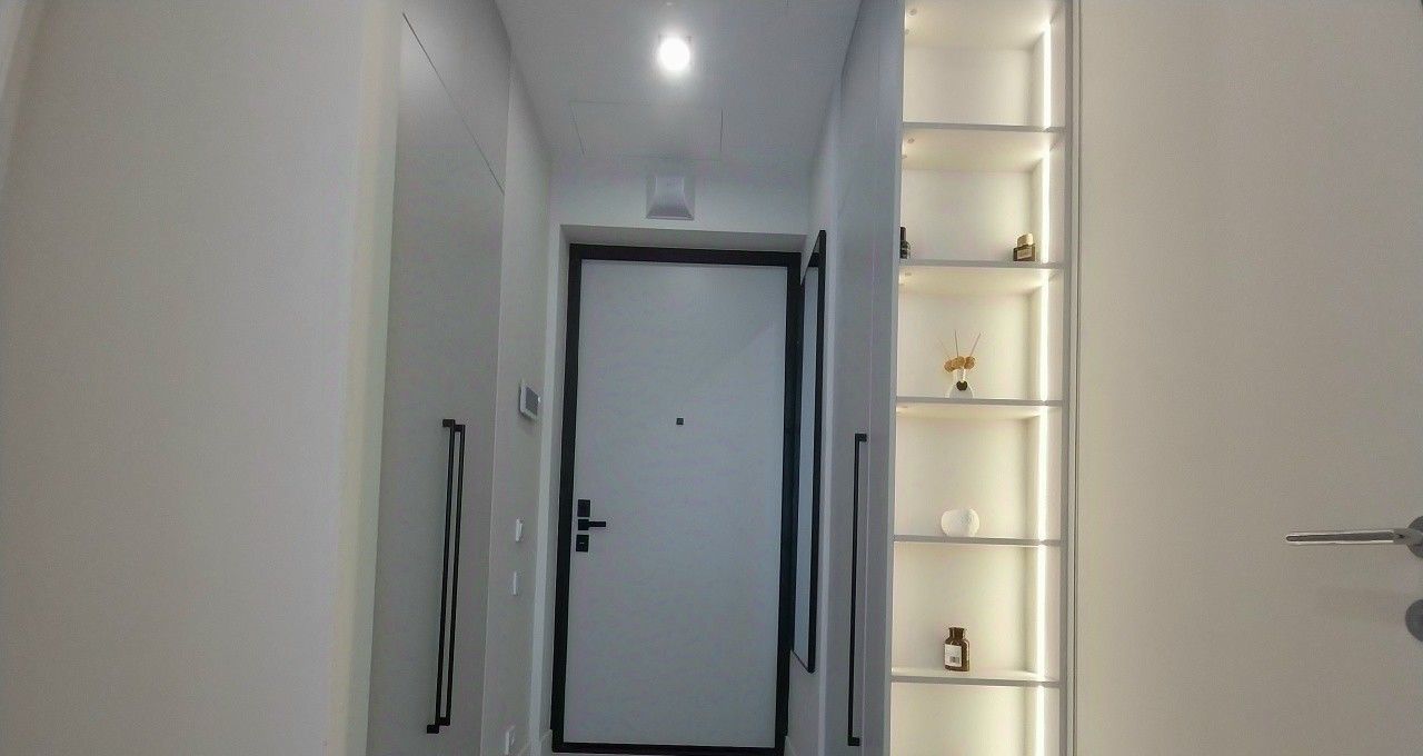 Новейший дорогостоящий дизайнерский ремонт, новая качественная мебель и техника (встроенный холодильник, плита и вытяжной шкаф, встроенная микроволновая печь с духовым шкафом, посудомоечная машина, стиральная машина, робот-пылесос). Есть много мест для закрытого хранения вещей.