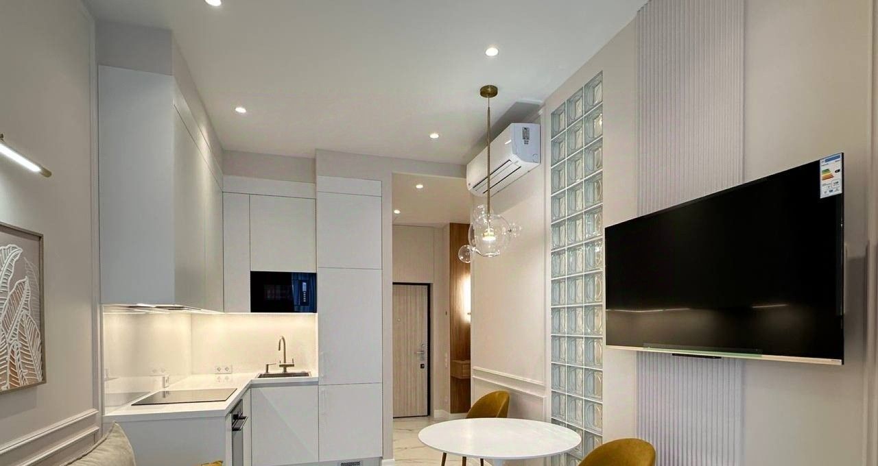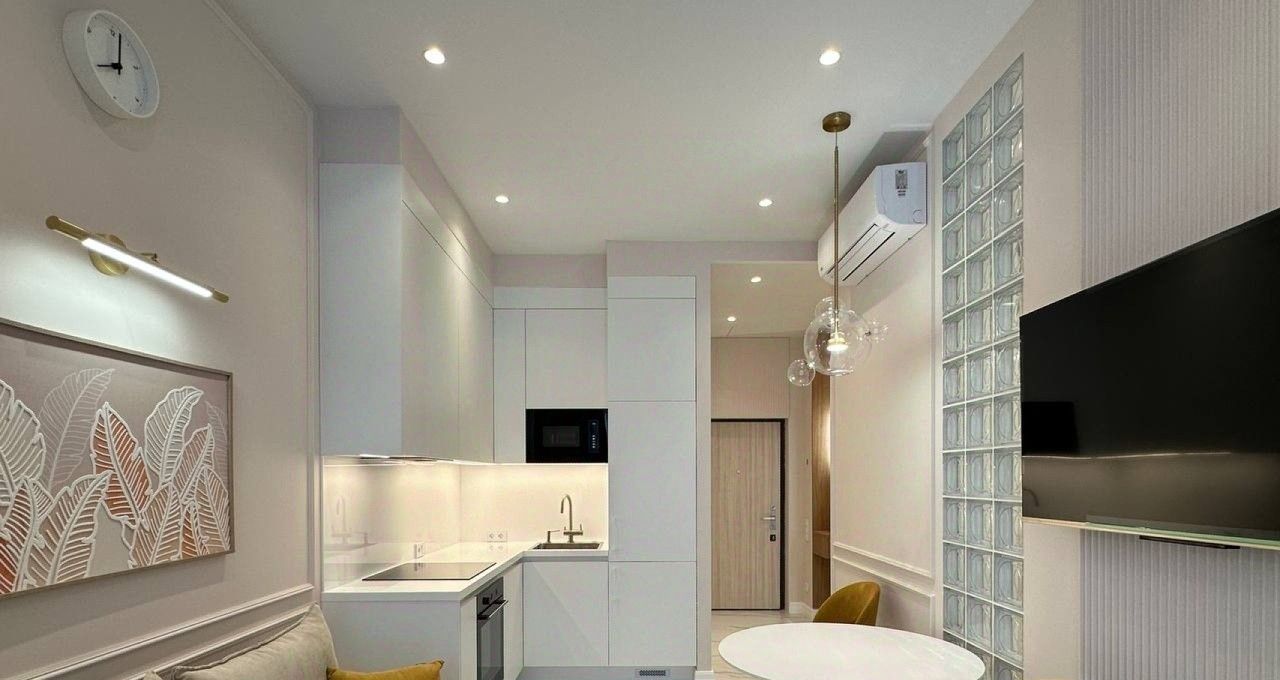 КВАРТИРА: Квартира действительно комфортной планировки. Планировка представляет собой большую просторную кухню-гостиную, одну изолированную спальню, санузел, гардеробная комната, множество мест для хранения вещей.