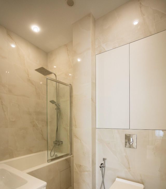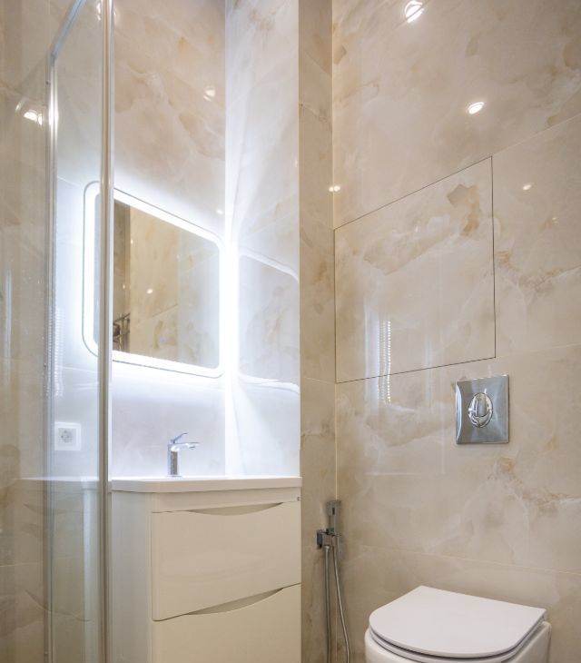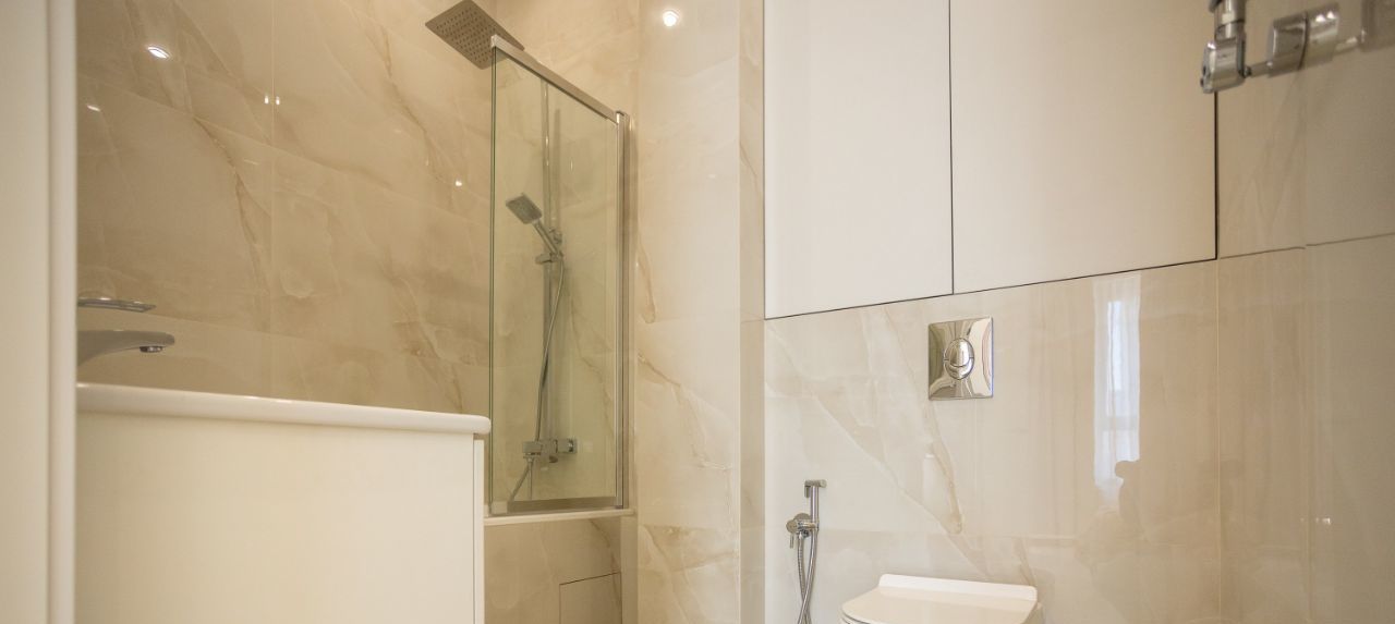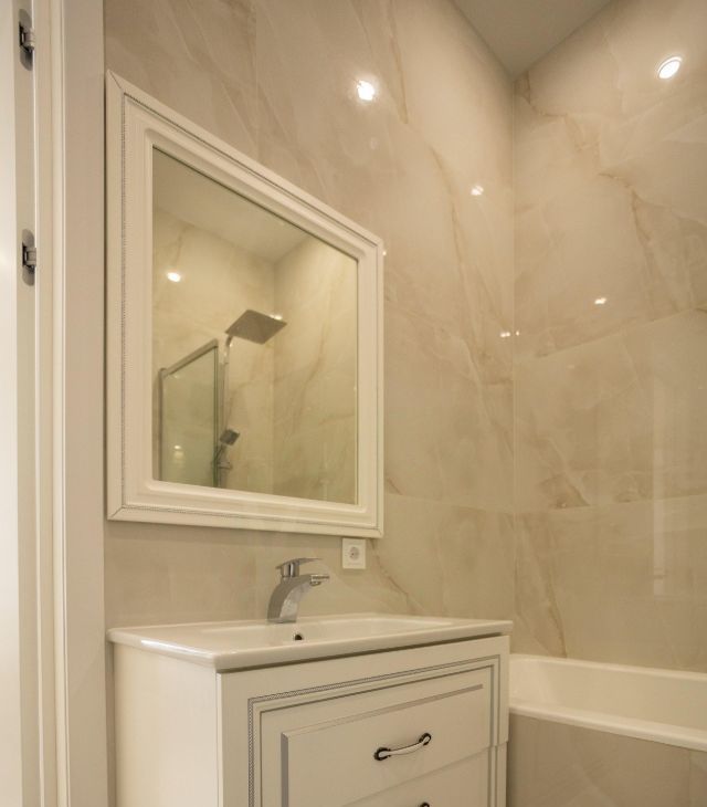 - Два сан узла ( один оборудован ванной , второй - душевой кабиной), оборудованы итальянской сантехникой и мебелью.
