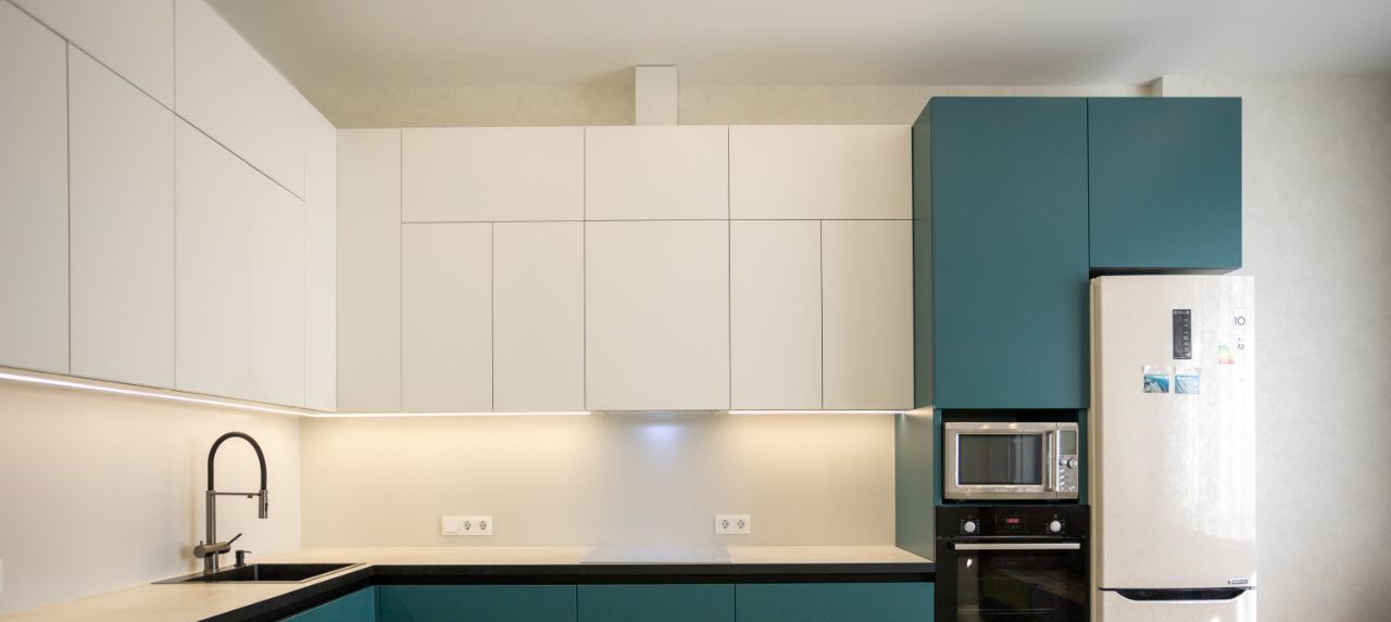 - духовой шкаф и микроволновка, холодильник.