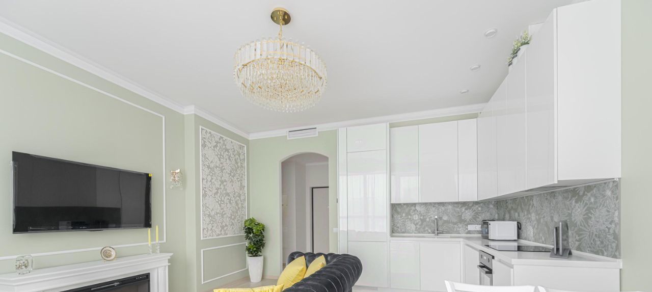 Функциональная планировка: просторная кухня-гостиная, оснащена всей необходимой бытовой техникой для комфортного проживания; две комнаты (спальня и кабинет); просторная гардеробная; санузел (ванна), оборудован качественной сантехникой.