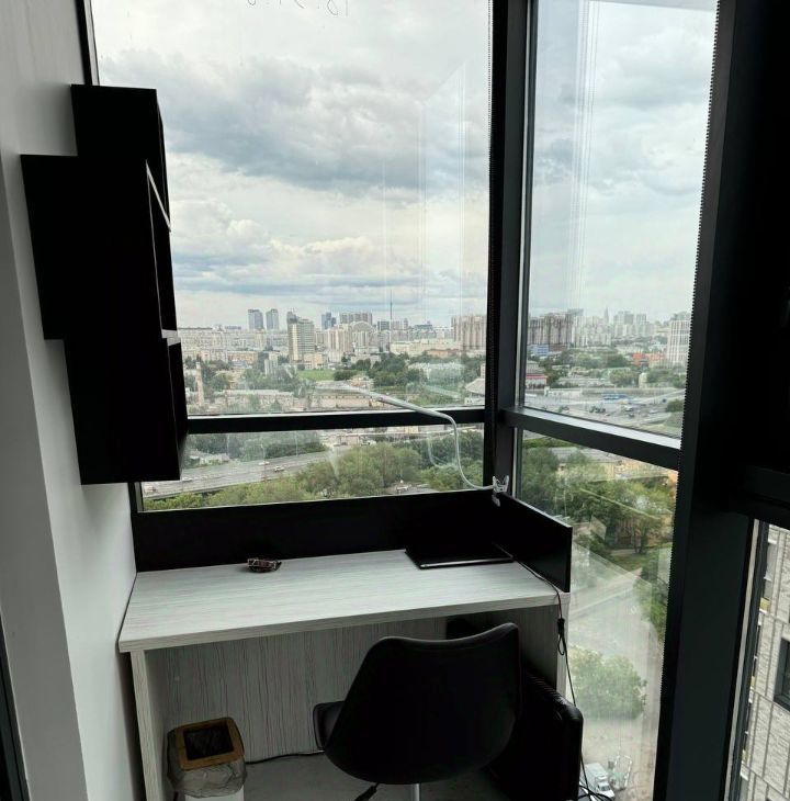 Отдельно отмечу, что балкон оборудован под рабочее место, то есть можно работать с панорамой на Москву с 18 этажа, что красиво.