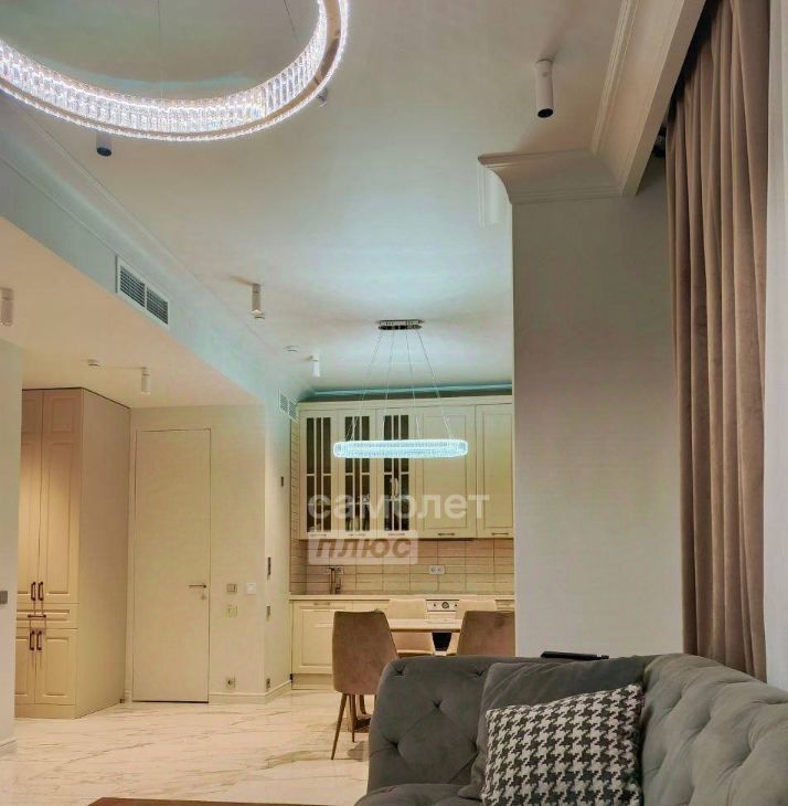 Планировка квартиры выполнена с заботой о вашем проживании: уютная кухня-гостиная, оборудованная всей необходимой встроенной техникой и кухонной мебелью; тихая спальня для комфортного отдыха; качественный дизайнерский ремонт; красивая итальянская мебель; два просторных санузла - основной, оборудованный ванной, и гостевой, пространства для хранения вещей в прихожей и спальне, бытовая техника для жизни (утюг, стиральная машина, два телевизора). В прихожей, санузлах и кухне установлены уютные теплые полы. Также для вашего удобства в квартире установлена система умного дома.