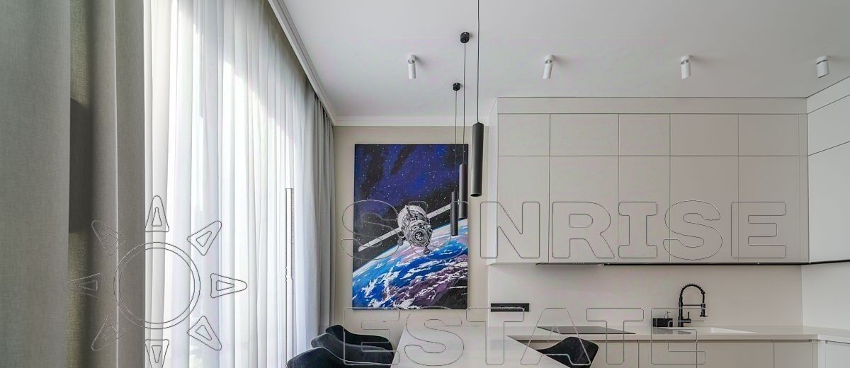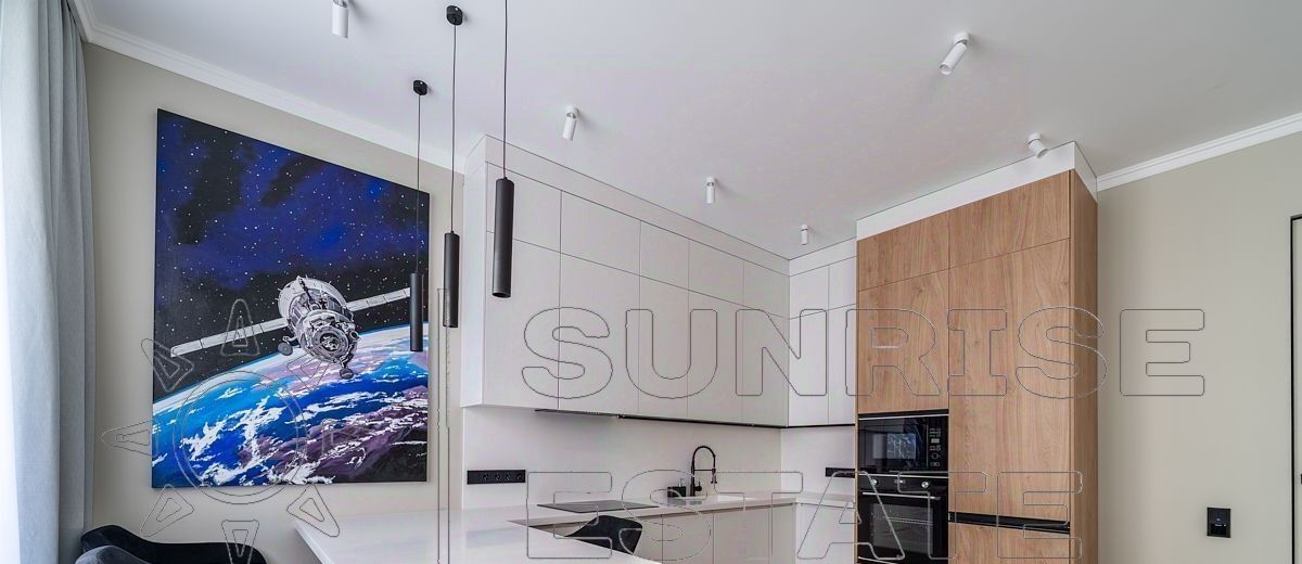 - Кухонный гарнитур со встроенной техникой (холодильник, варочная панель, микроволновка, встроенный фильтр для воды).