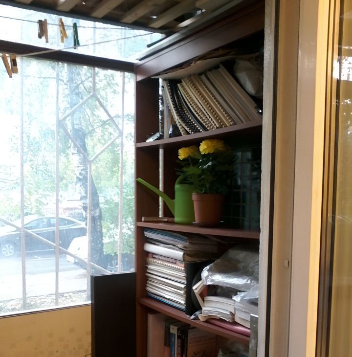 Много дополнительных мест для хранения - светлый встроенный шкаф в прихожей, встроенный книжный шкаф, "темная комната" (стиральная машина "Самсунг", полки для "заготовок").