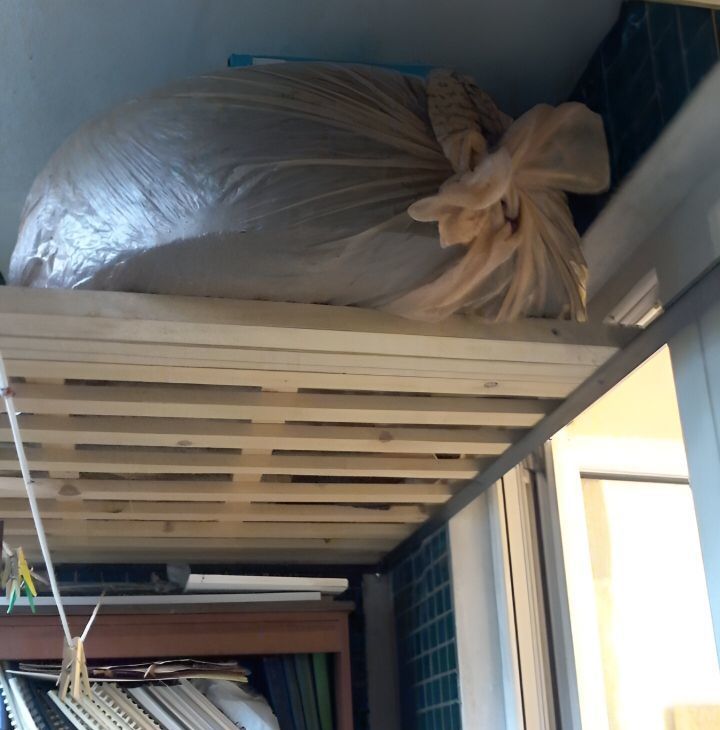 Удобный балкон со встроенными шкафами. На балконе - ниши для хранения зимних колес.