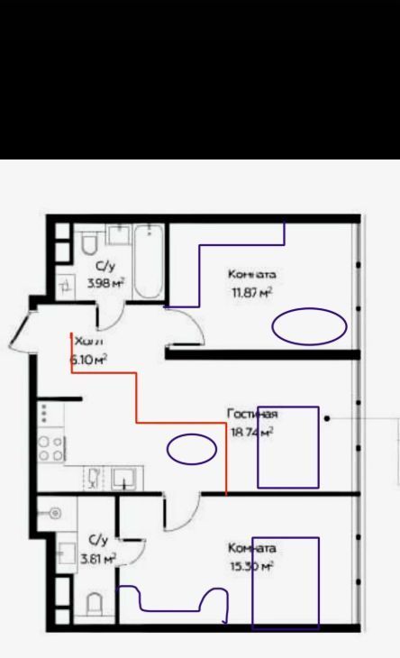 Функциональная евротрешка в доме бизнес класса, с кухней-гостиной, с предчистовой отделкой с панорамными окнами.