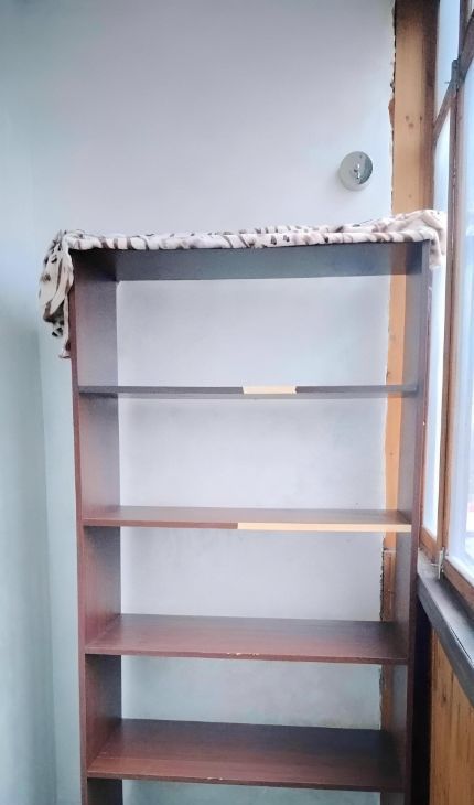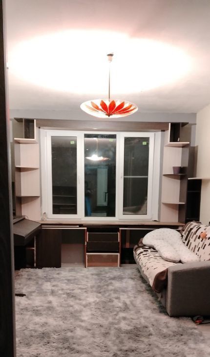 В комнате установлены крепления для гамака, гамак тоже есть. Раскладной диванчик, письменный стол вдоль окна. Шкаф для хранения вещей.