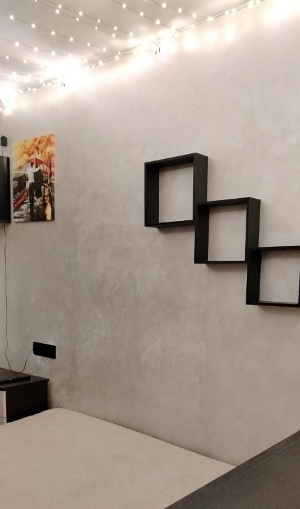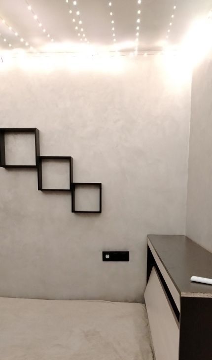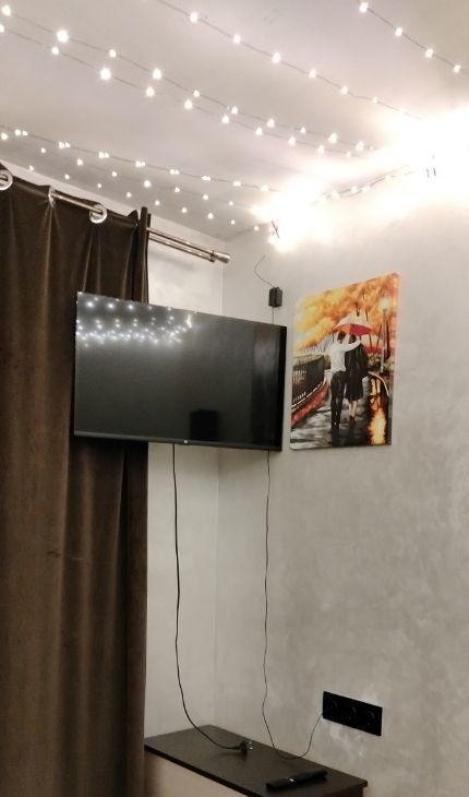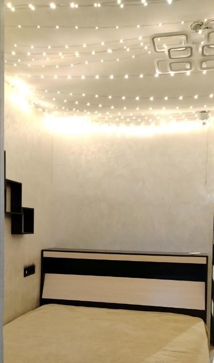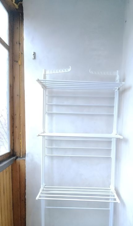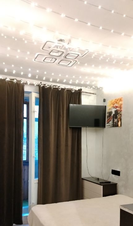 Одна комната-спальня с застекленным балконом и двуспальной кроватью. Там же ТВ, шкаф для хранения вещей, шторы блэкаут. На балконе есть место для сушки белья.