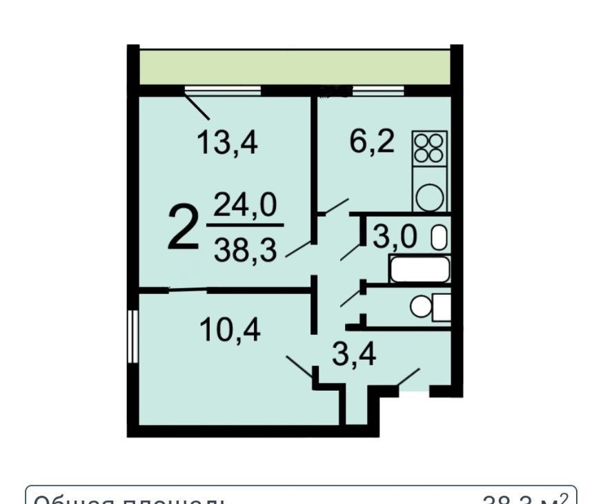 2-к кв. Москва Широкая ул., 3К1 (38.3 м²)