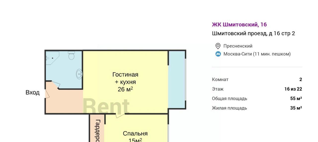 2-к кв. Москва Шмитовский проезд, 16С2 (55.0 м²)